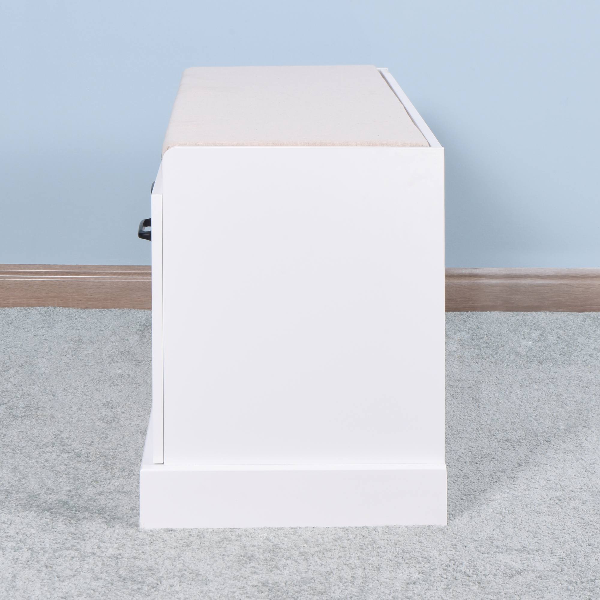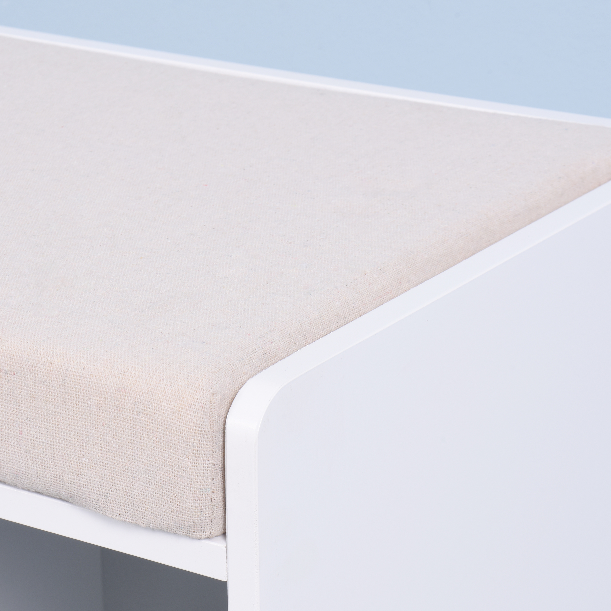 Comfort Seat: Featuring a thick padded cushion wrapped in breathable linen fabric, the entryway shoe organizer offers a comfortable sitting experience.