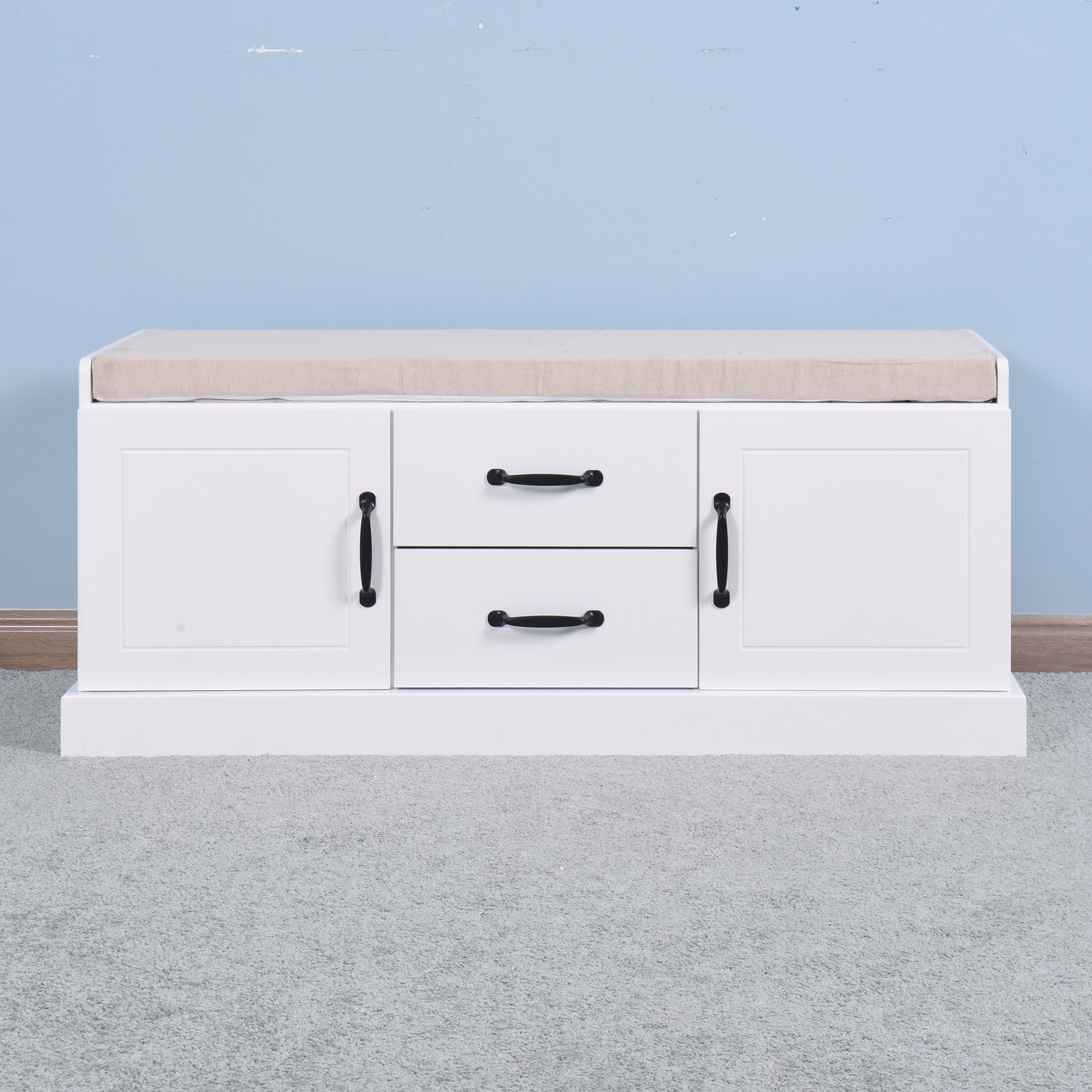 Comfort Seat: Featuring a thick padded cushion wrapped in breathable linen fabric, the entryway shoe organizer offers a comfortable sitting experience.