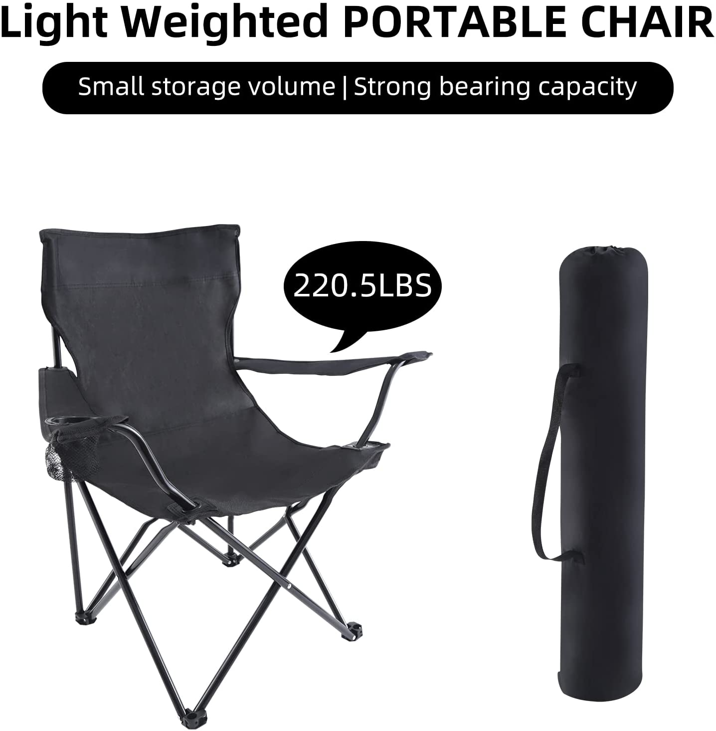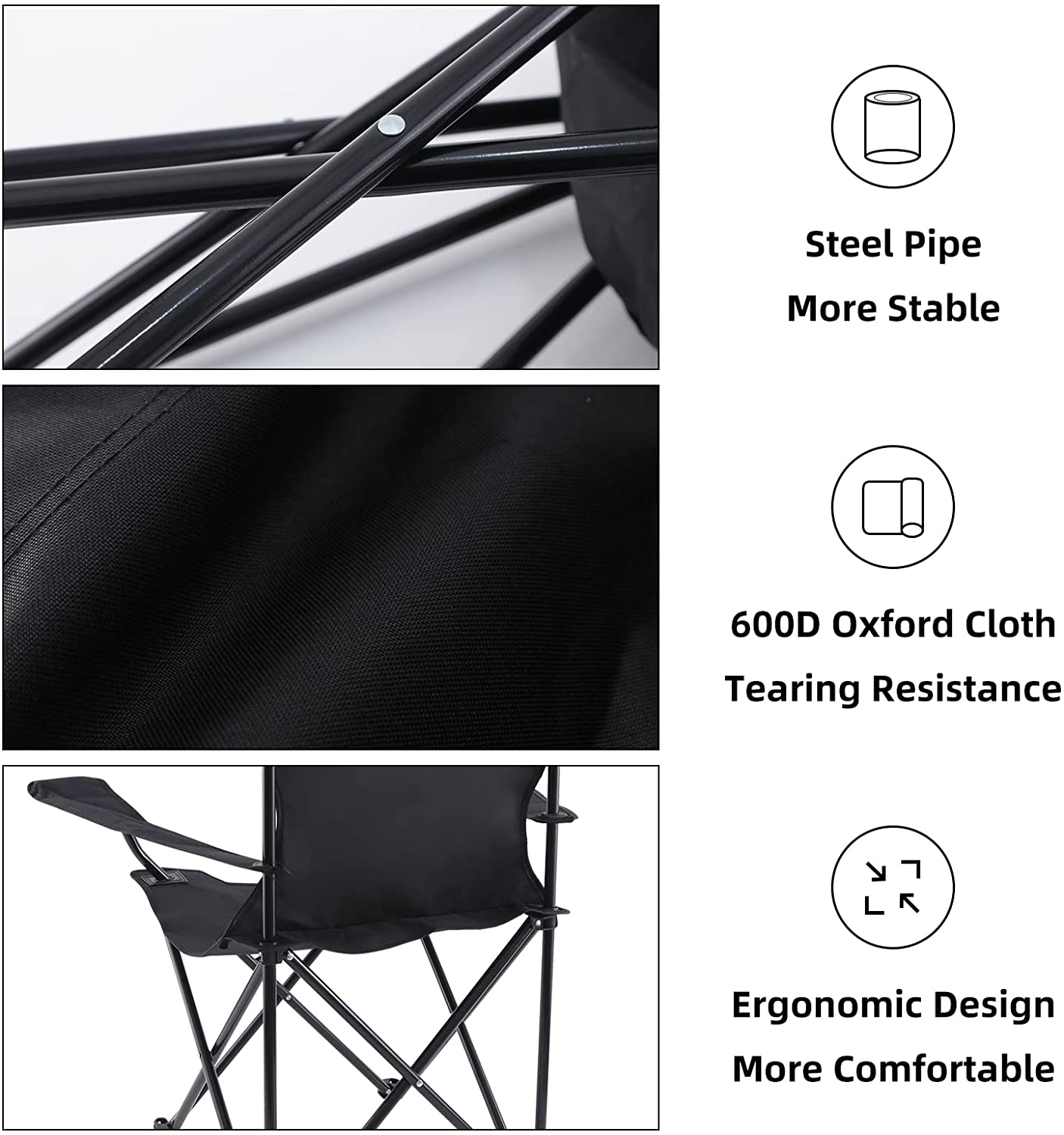 Lightweight & Extra Strong Frame - Constructed of thick-walled steel tubing and 600D oxford tear resistant fabric. Only 3.75 pounds folding chair supports above general adult weight.