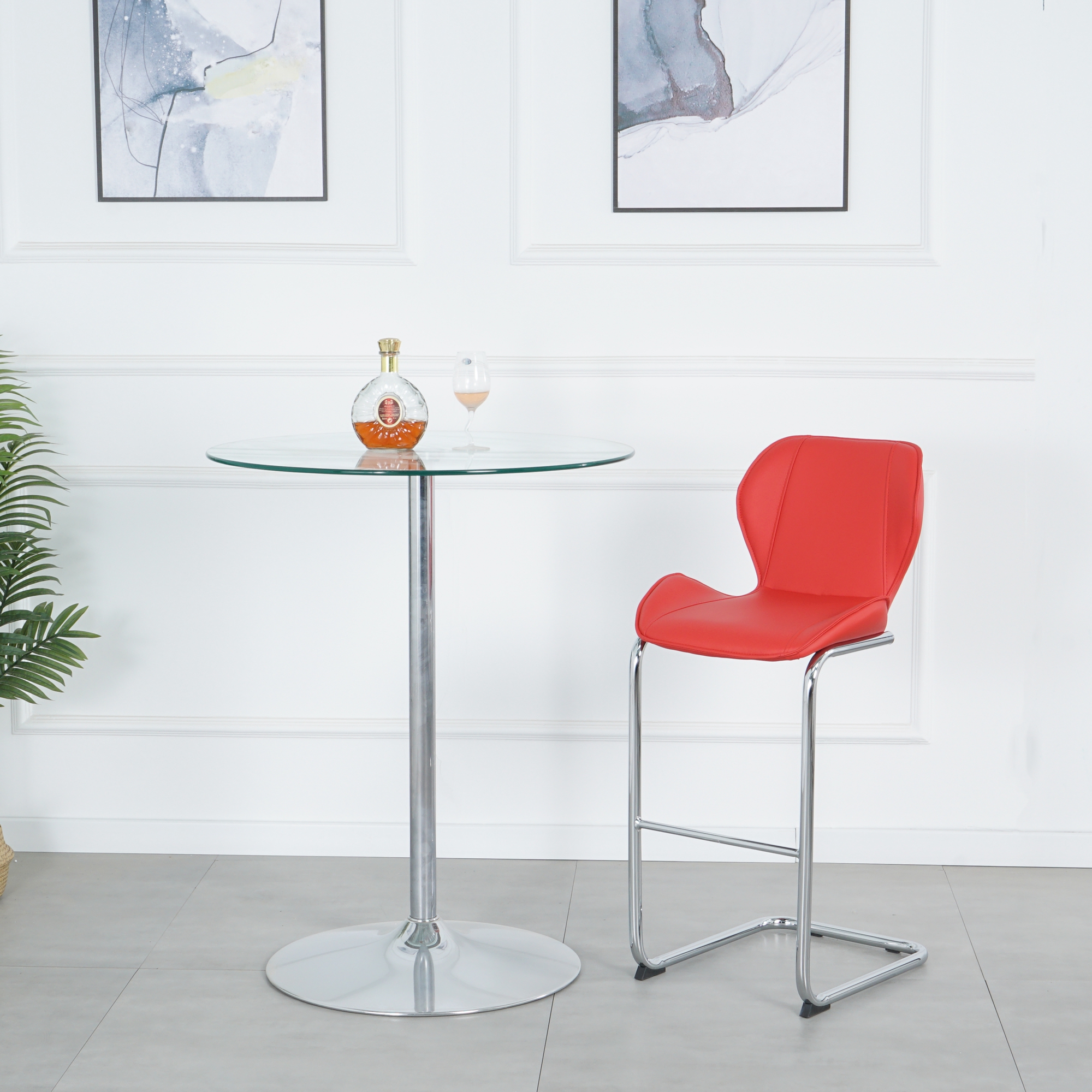Burgundy PU Upholstery Counter Stool, Set of 2