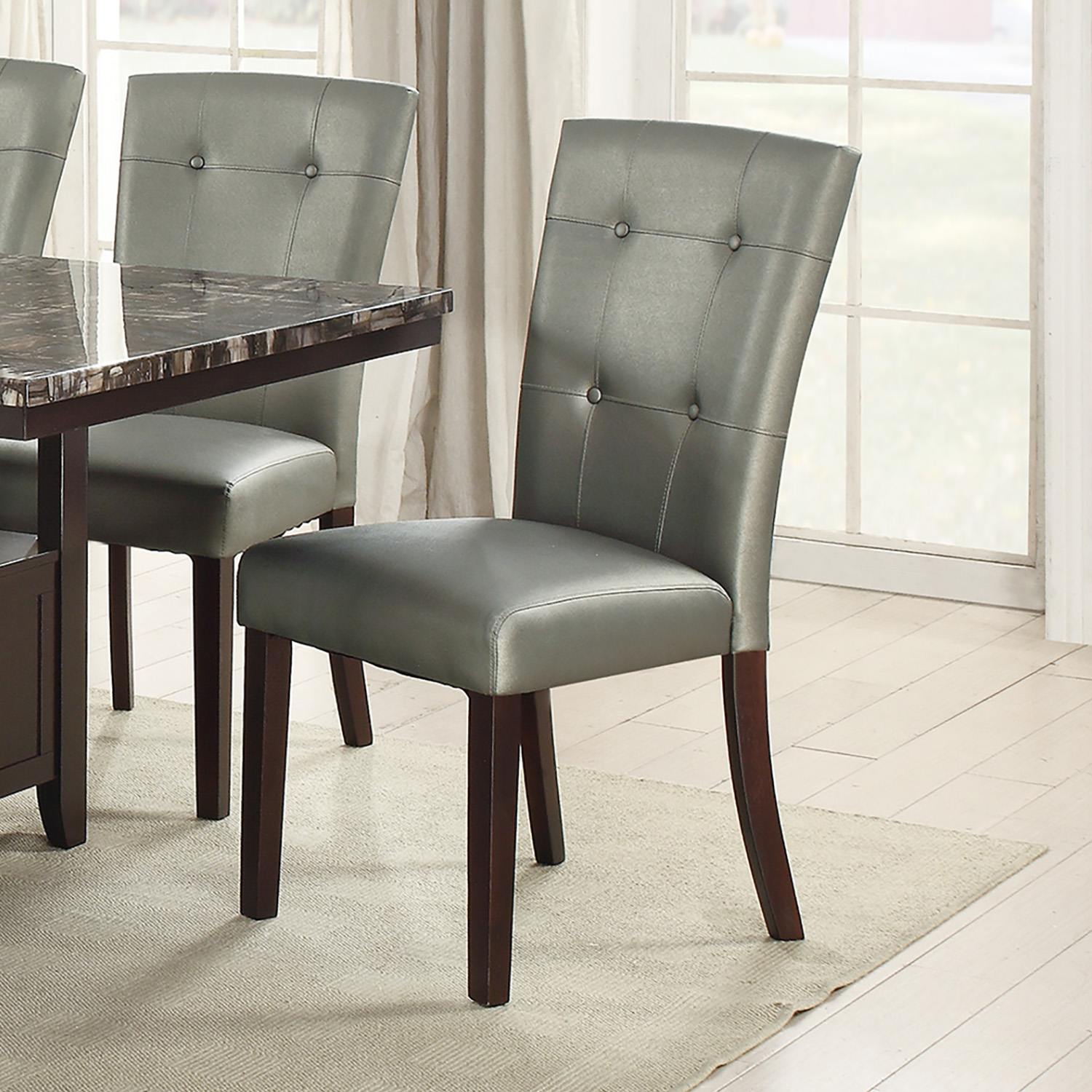Modern Parson Chairs Silver Faux Leather Tufted Set of 2 Side Chairs Dining Seatings