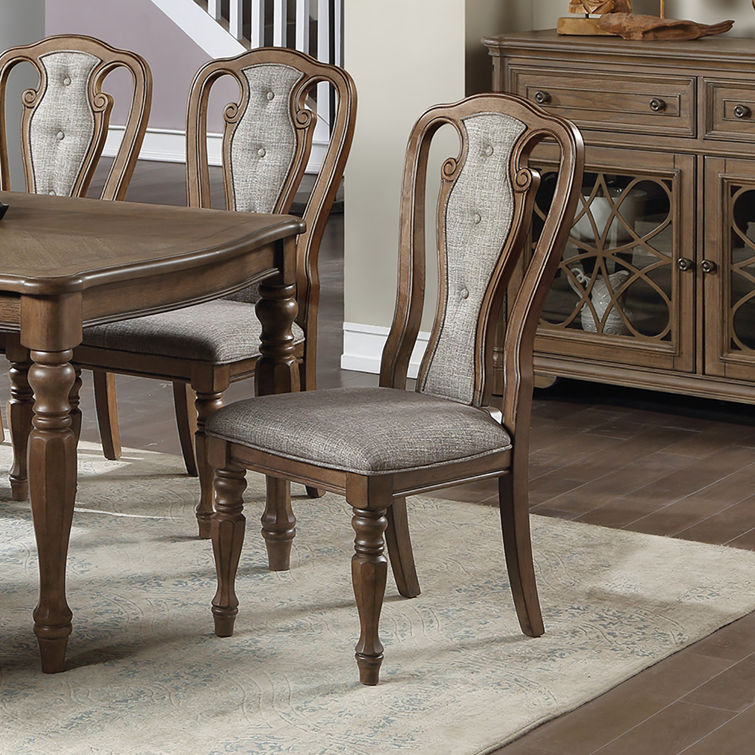 Set of 2 Upholstered Dining Chair in Walnut Finish