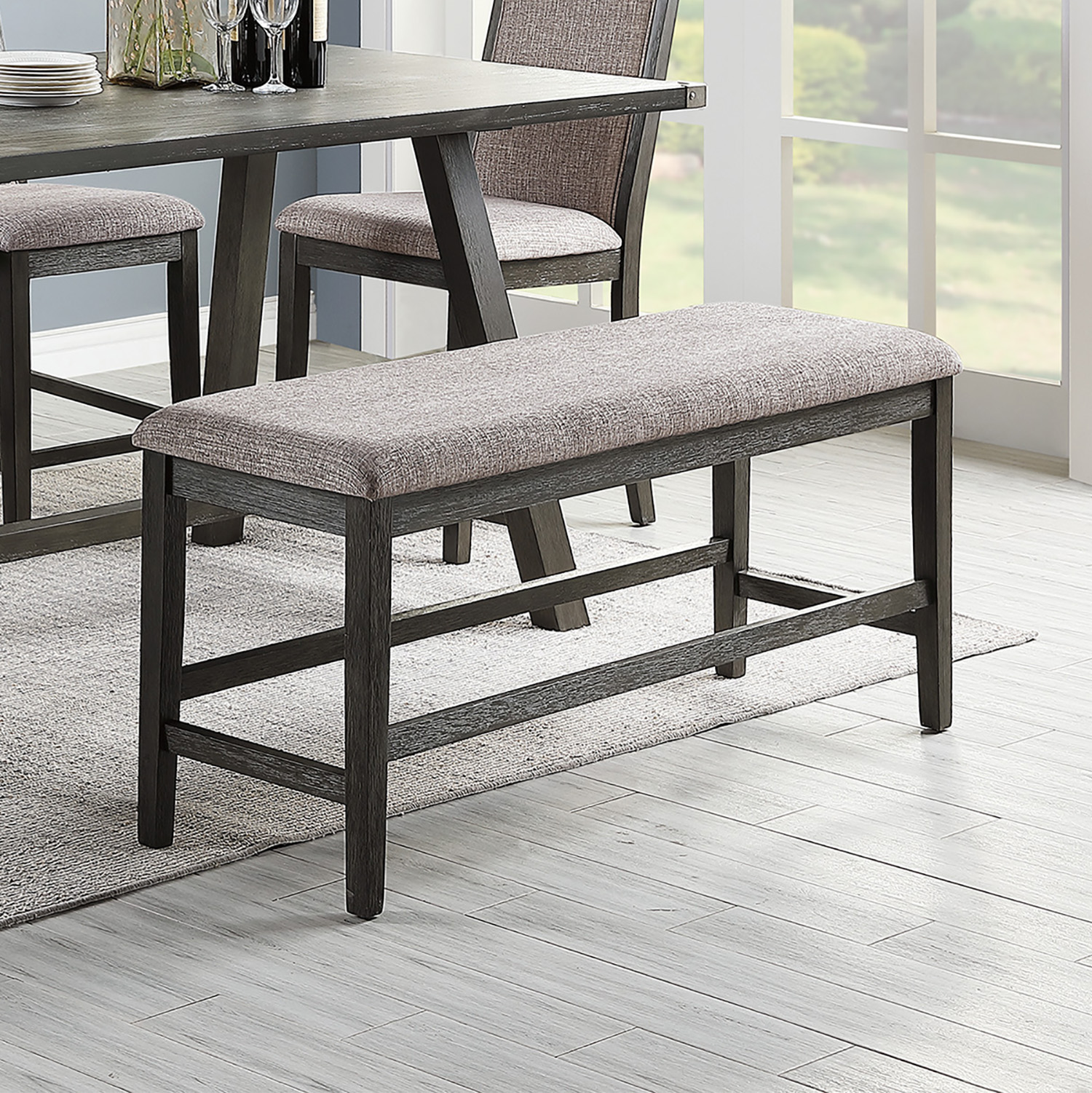 Dining Bench With Upholstered Cushion,Grey