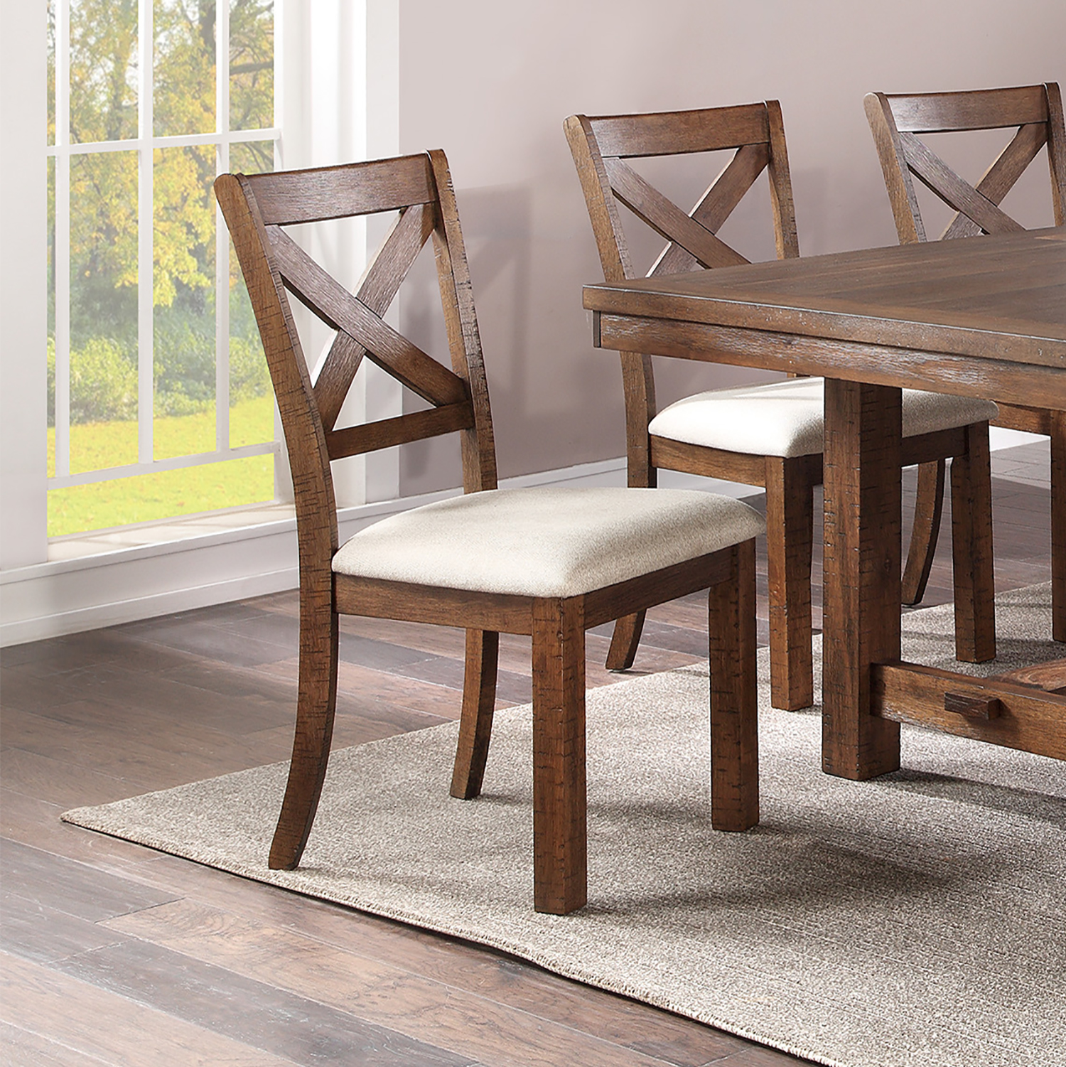 White Fabric Upholstery Wood Side Chairs, Brown