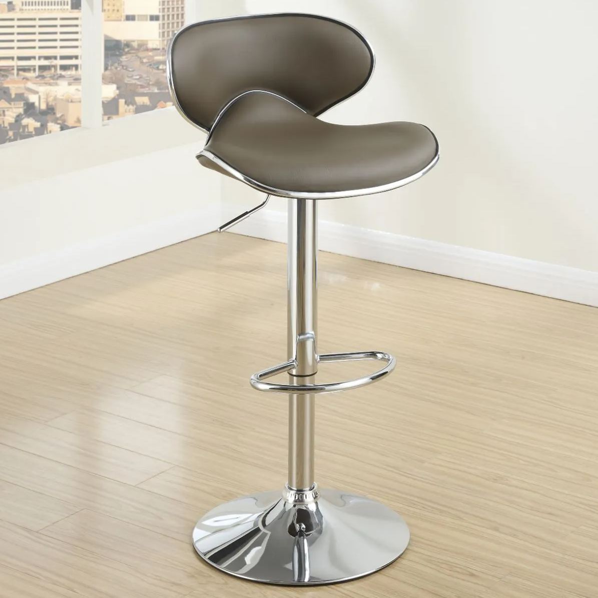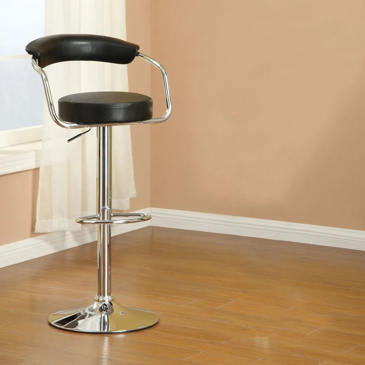 Adjustable Black PU Bar Stools, Chrome(Set of 2)