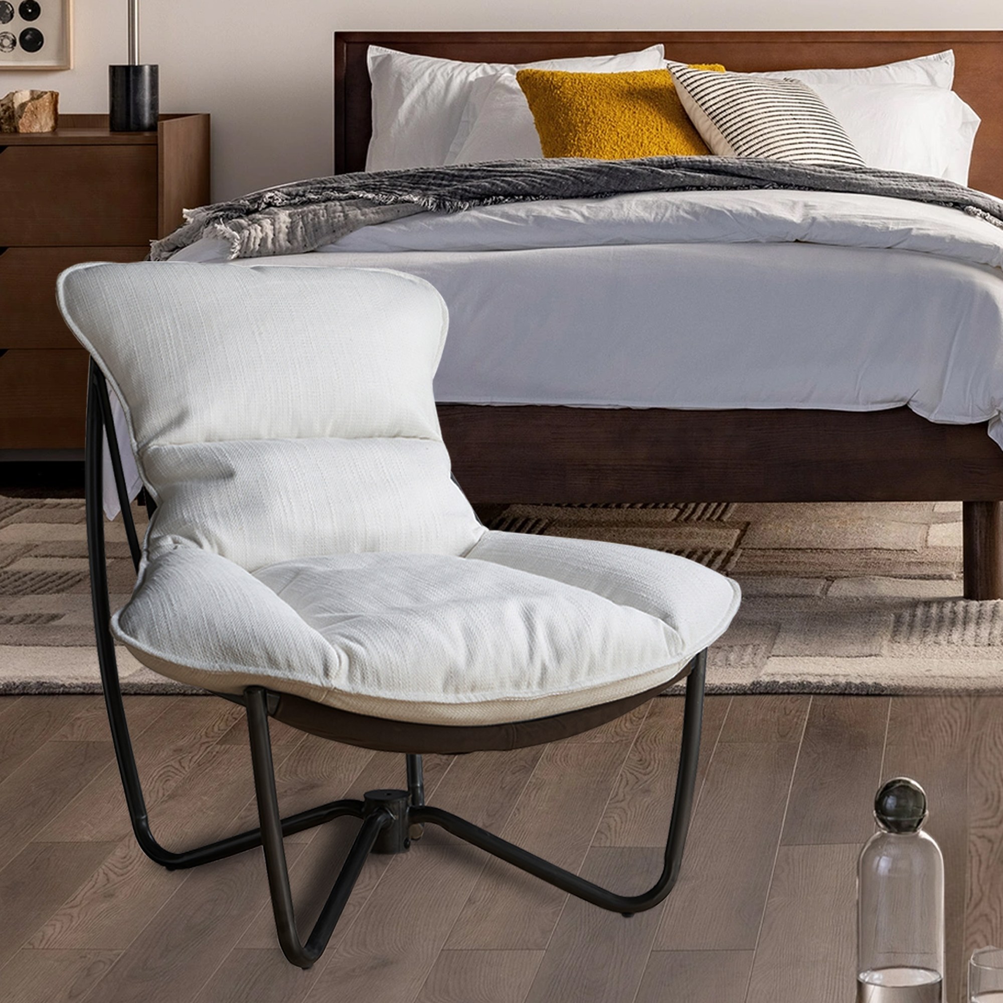 Off-White Velvet lounge chair, black metal feet, unique back design, suitable for office, living room, bedroom