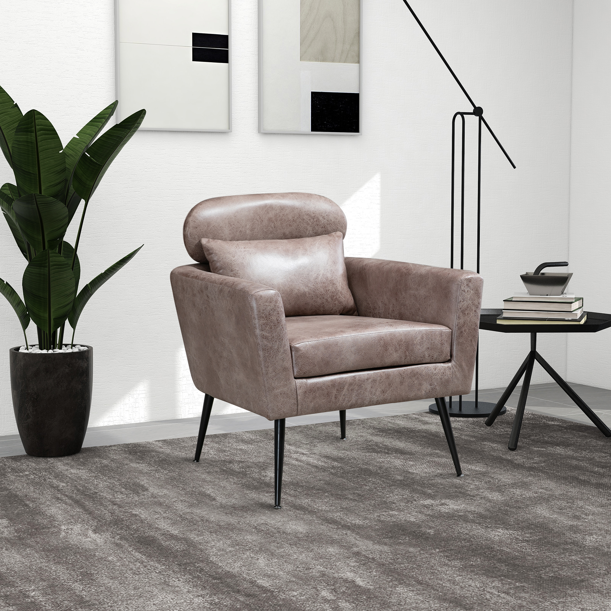 29.5'W Classical Accent Chair Armchair Upholstered Reading Chair Single Sofa Leisure Club Chair with Black Metal Leg and Throw Pillow for Living Room Bedroom Dorm Room Office, Taupe Bronzing Suede