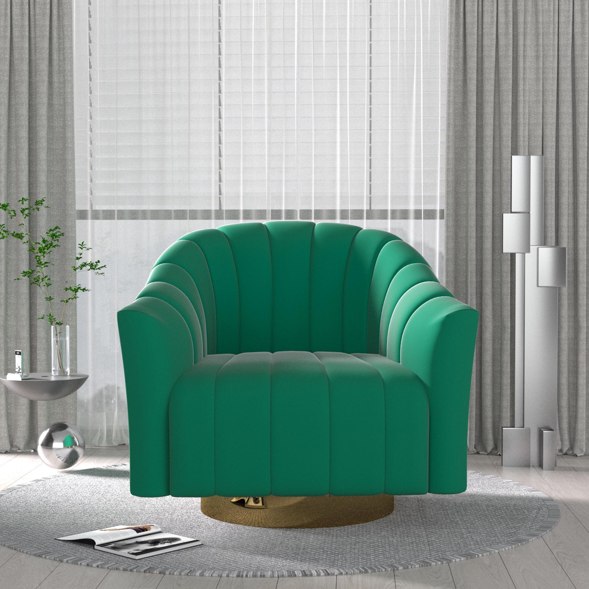30.7'W Swivel Accent Open Back Chair Modern Comfy Sofa Chair With Gold Stainless Steel Base For Nursery Bedroom Living Room Hotel Office, Club Chair Leisure Arm Chair For Lounge (Green Chenille)