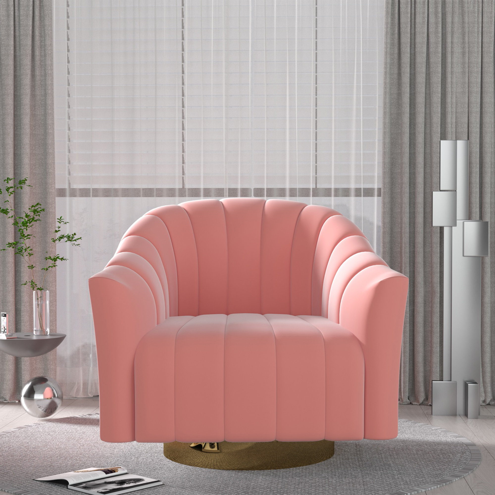 Modern Velvet Swivel Accent Chair, Swivel Barrel Chair with Gold Finish Stainless Steel Base