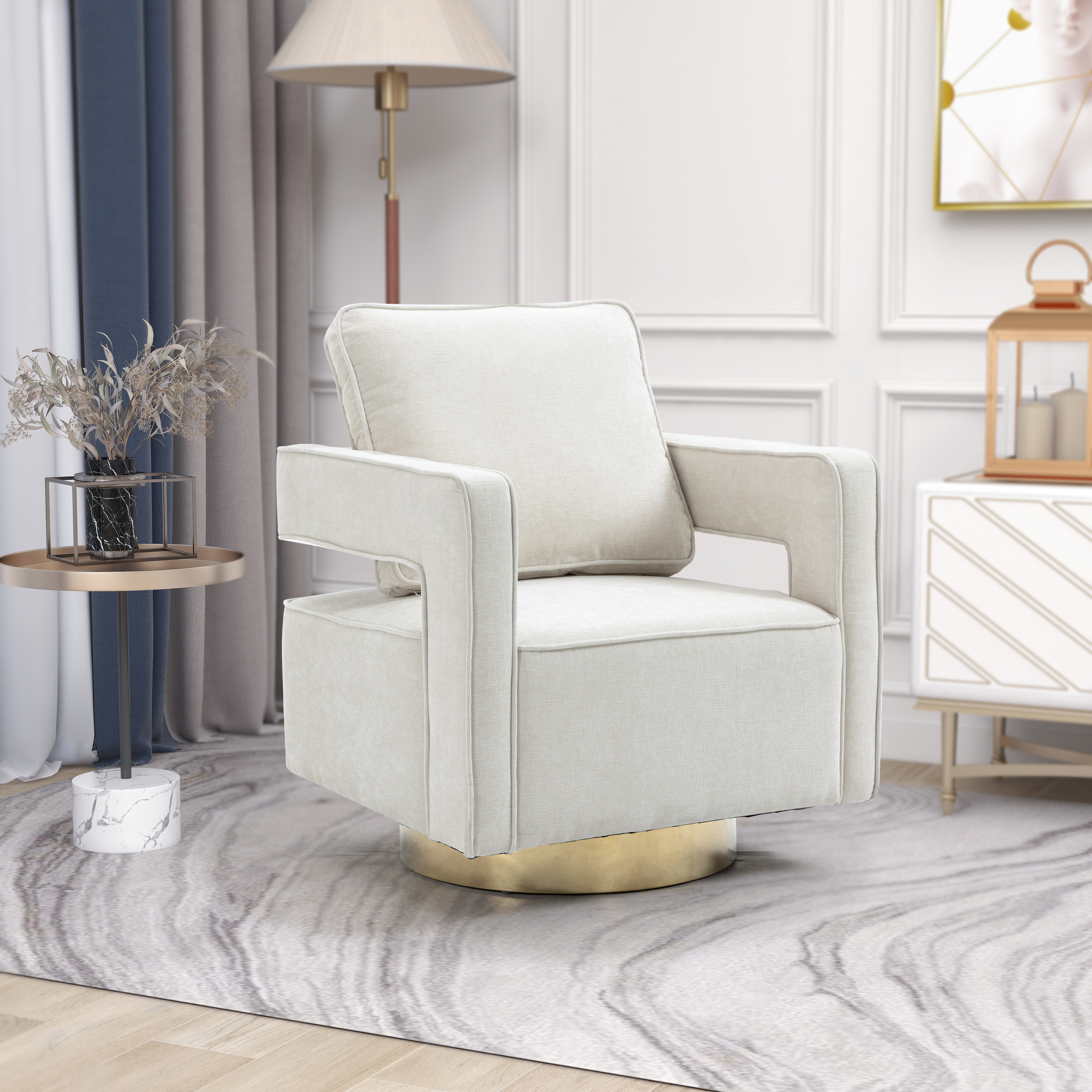 30.7'W Swivel Accent Open Back Chair Modern Comfy Sofa Chair With Gold Stainless Steel Base For Nursery Bedroom Living Room Hotel Office, Club Chair Leisure Arm Chair For Lounge (Beige Chenille)
