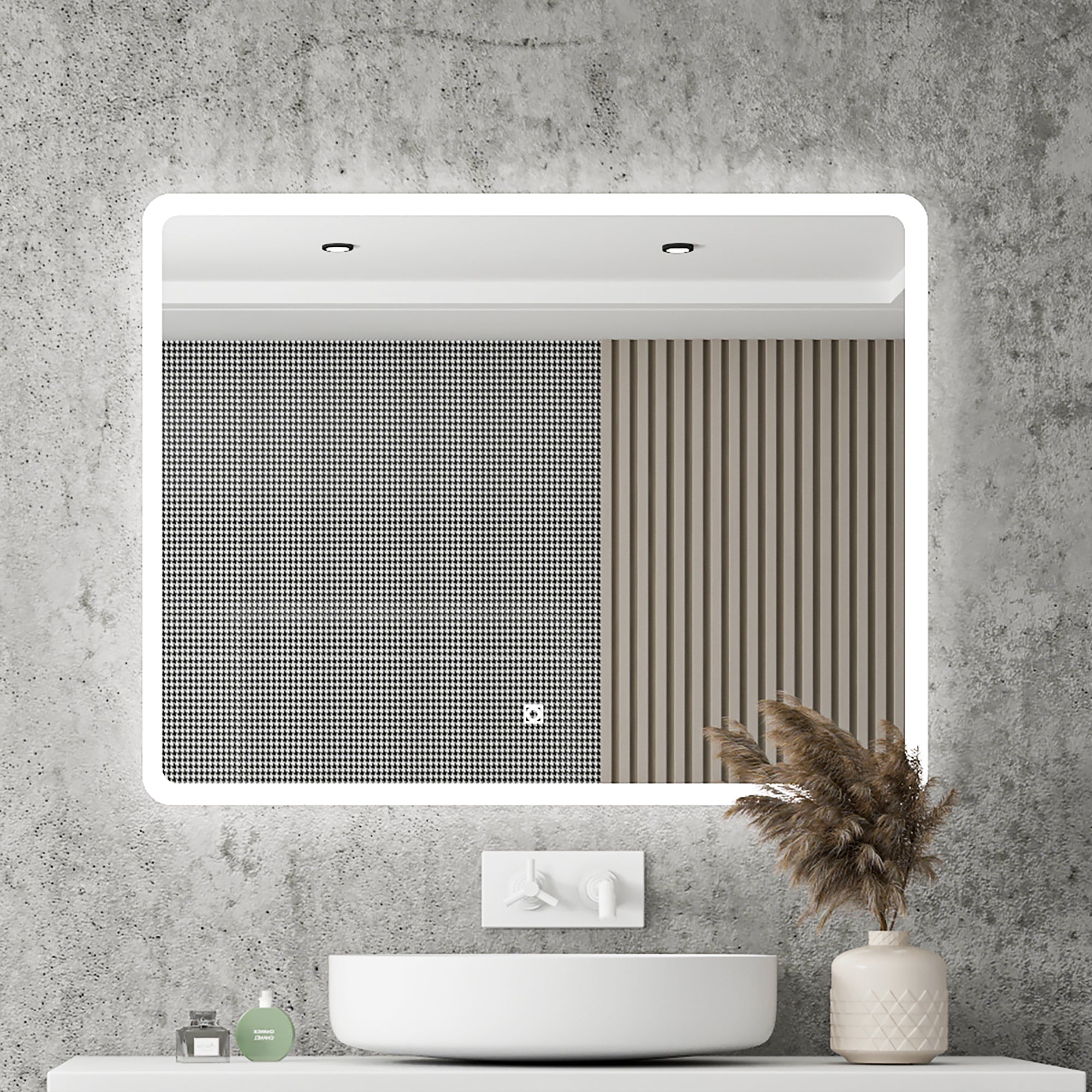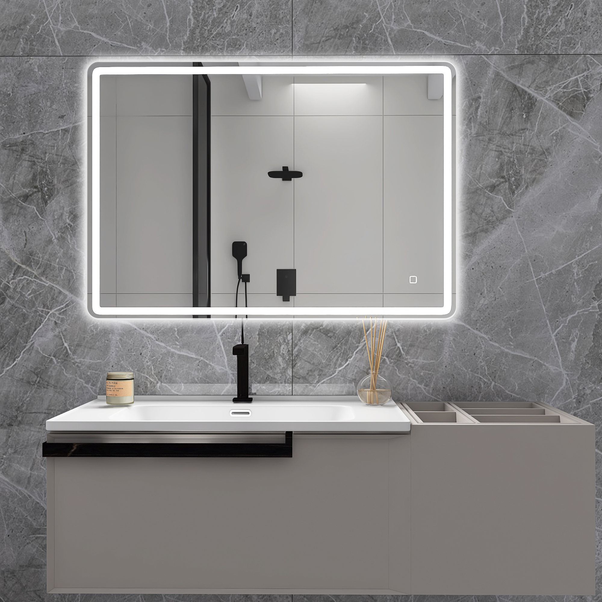 01 Rectangular Bathroom Mirrors with Adjustable Lights and Anti-Fog water