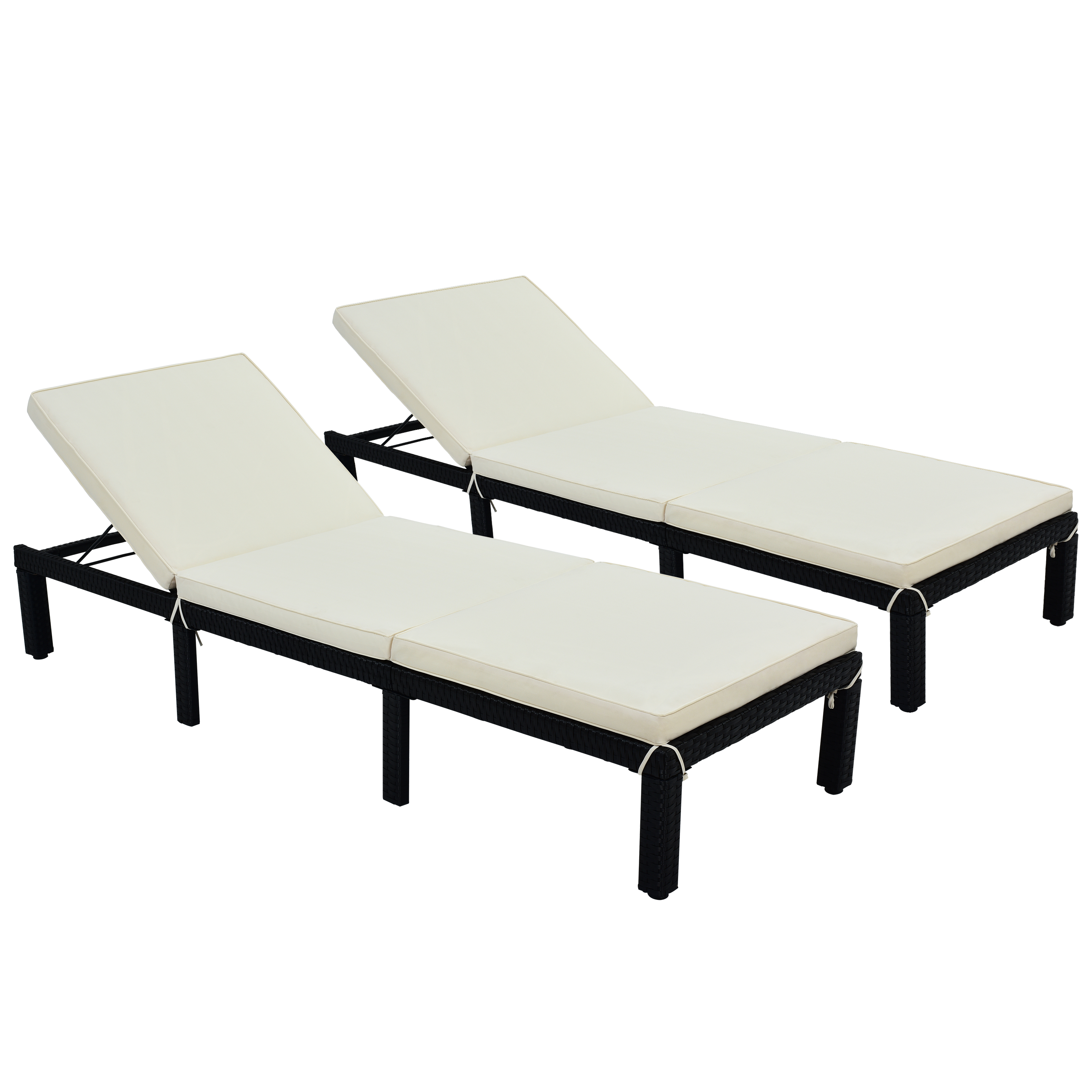 Patio Furniture Outdoor Adjustable PE Rattan Wicker Chaise Lounge Chair Sunbed,Set of 2(Beige)