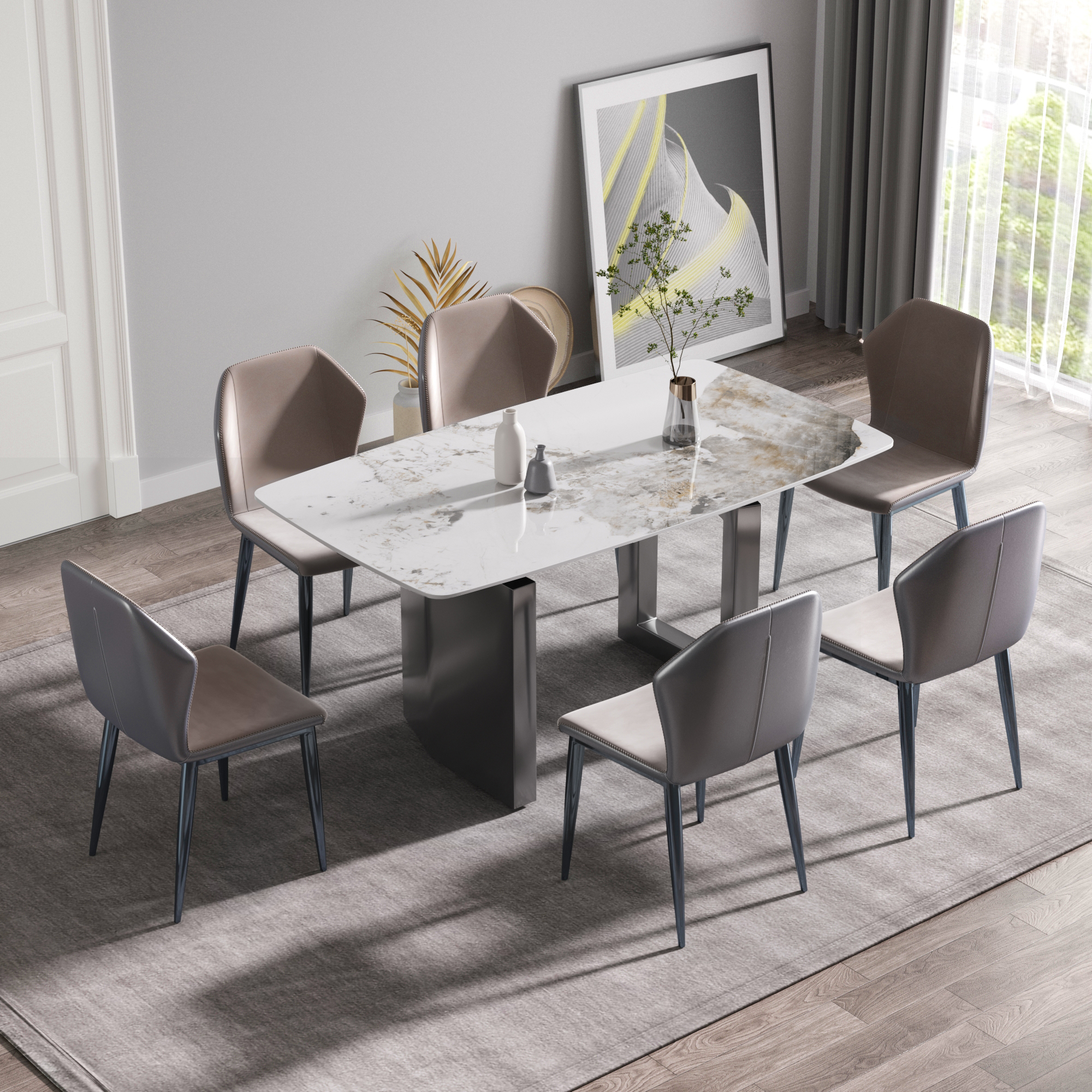 70.87"Modern artificial stone gray curved metal leg dining table-can accommodate 6-8 people