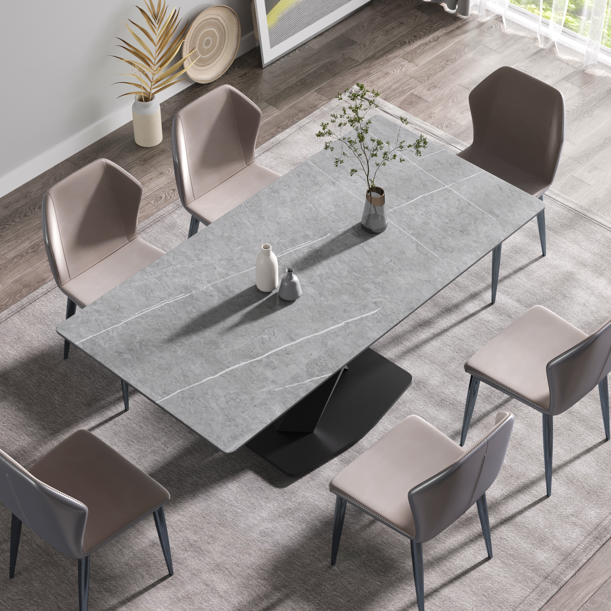 70.87"Modern artificial stone gray curved black metal leg dining table-can accommodate 6-8 people