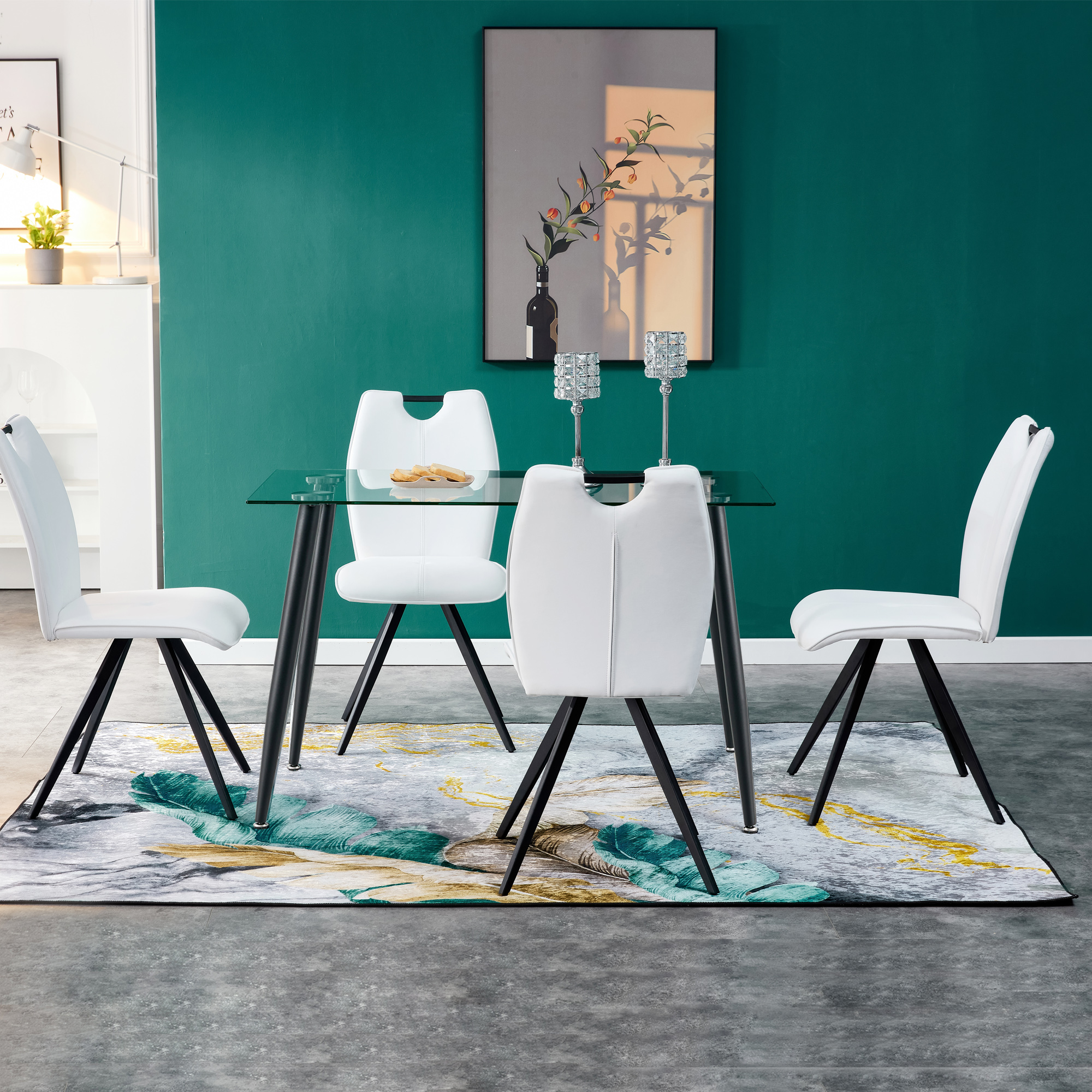 63"Modern artificial stone white straight edge metal leg dining table -6 people