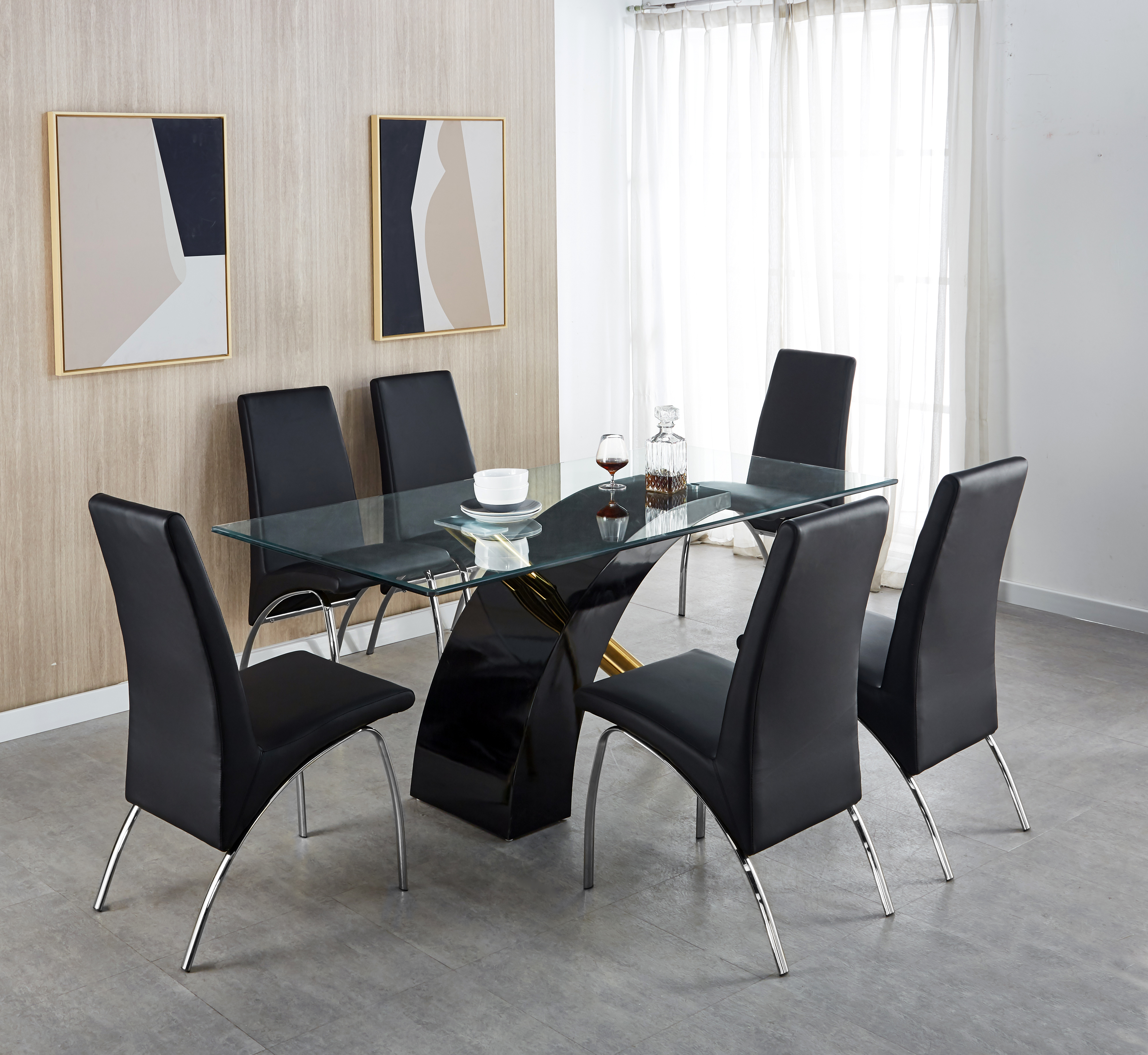 70.87"Modern artificial stone black curved black metal leg dining table-can accommodate 6-8 people