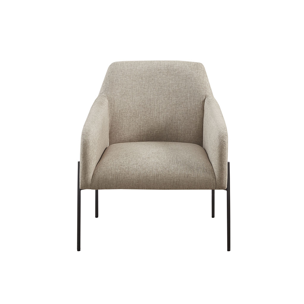 Long Descriptions | Update your living room with modern flair of the Madison Park Calder Metal Leg Accent Chair. This accent chair flaunts a modern design with an upholstered square seat and back framed by track style arms to create a sleek and stylish look. The slender metal legs feature an iron black metal finish to complement the upholstery and complete the contemporary design. With a tight seat and standard back, this accent chair brings a simple modern touch to elevate your living room decor. Leg assembly is required and a tool is included. |