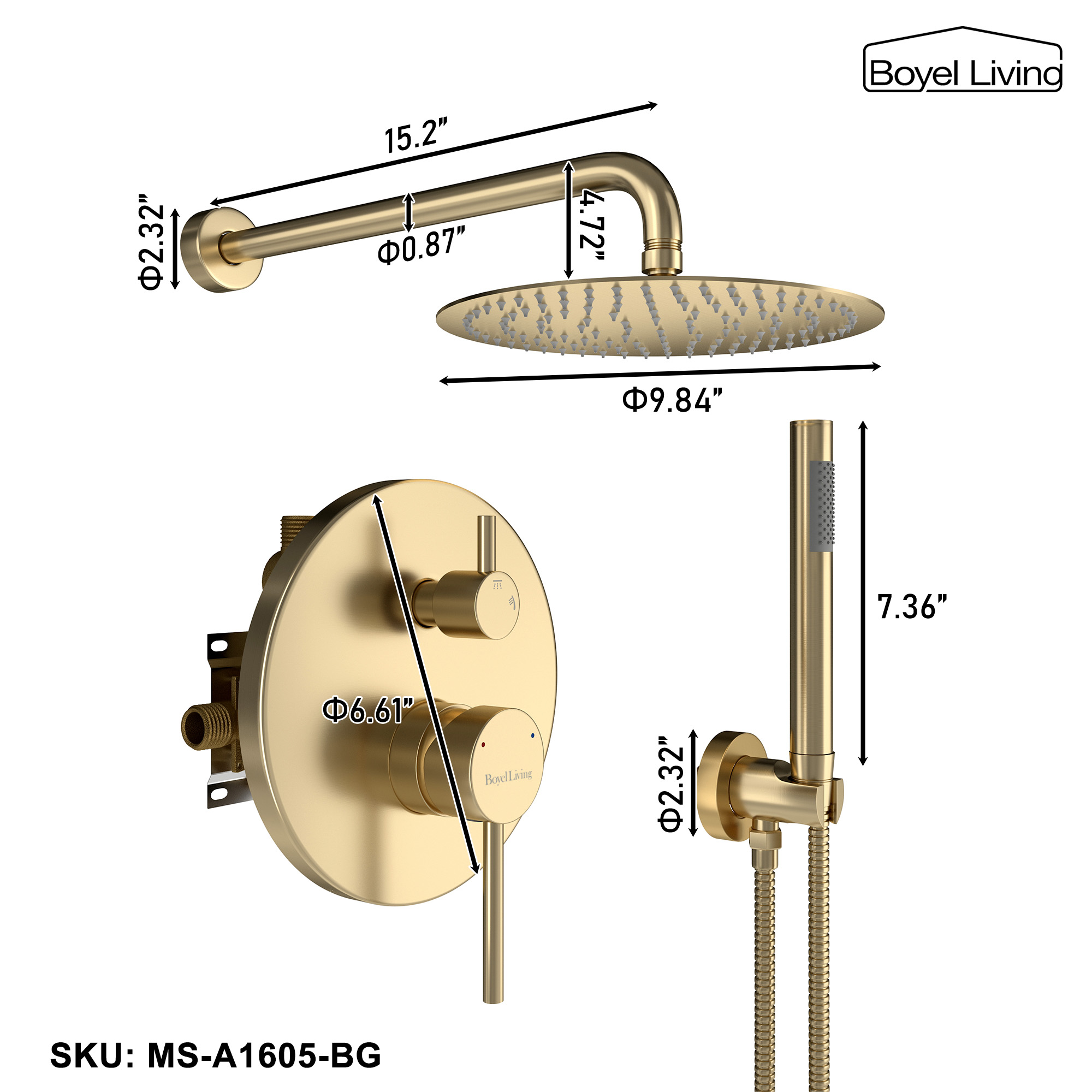 10-inch Round Wall Mount Rain Shower System With Handheld Shower Head