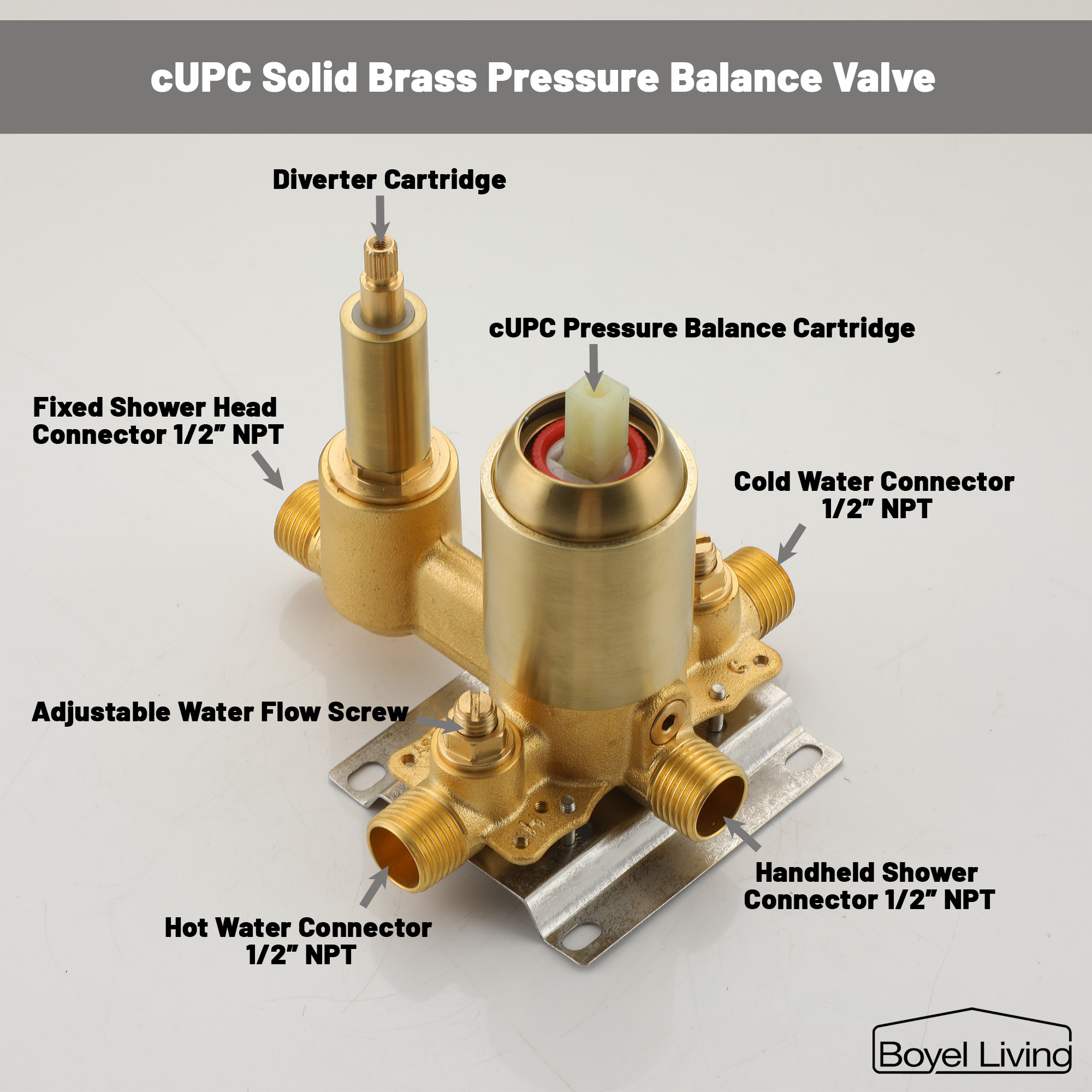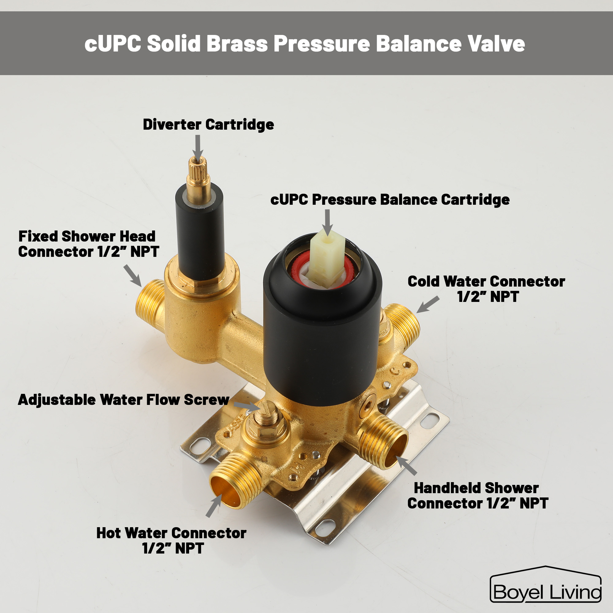 Pressure balancing valve to maintain a steady supply of cold and hot water, helping to protect you from scalding caused by sudden changes in water pressure