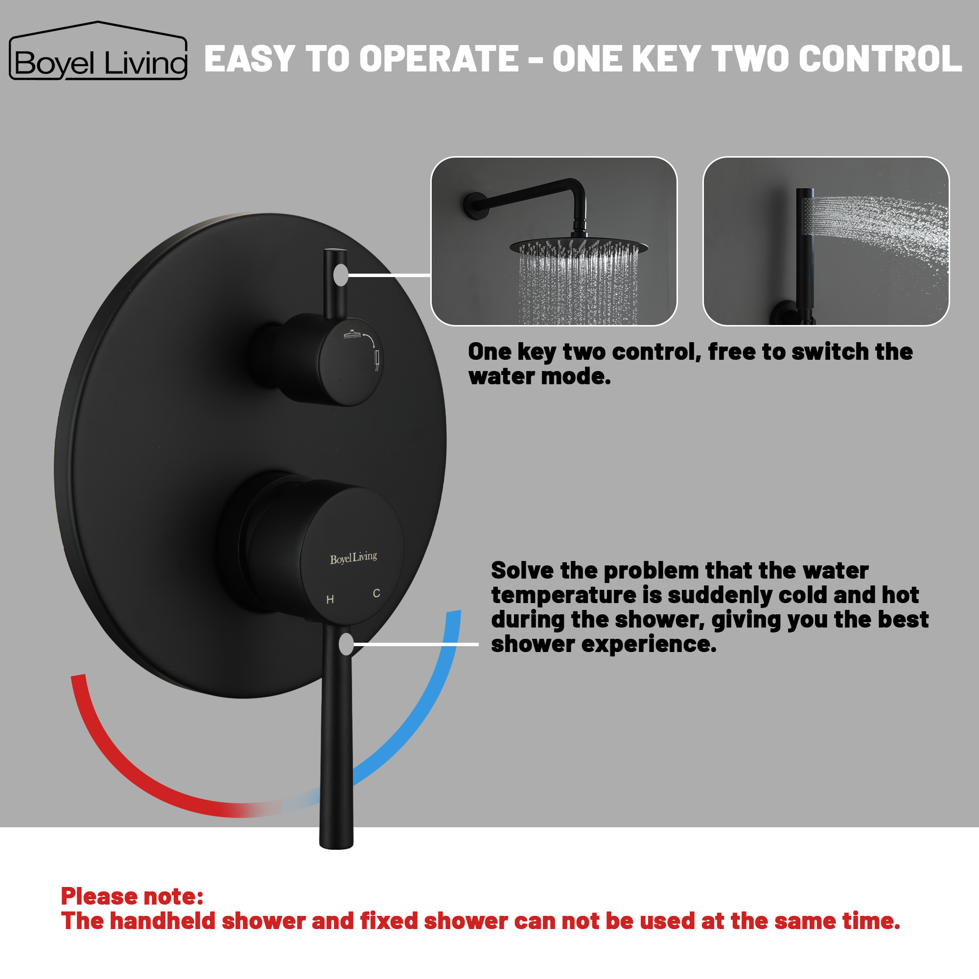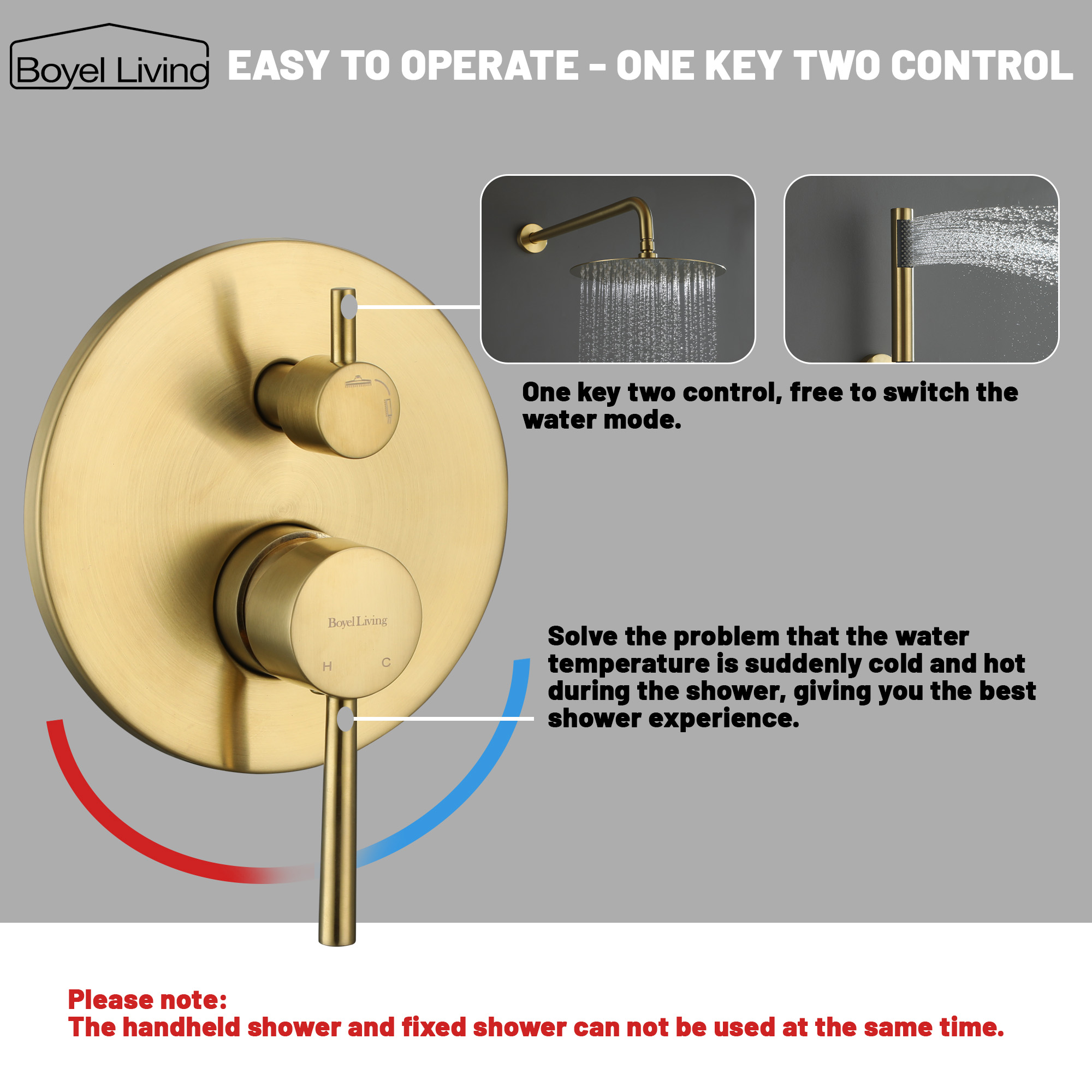 Made of high-quality durable brass, this shower system comes with a shower head and a hand shower. Featuring a wall-mounted installation, the showerhead sits above you, simulating the feeling of rain pouring down, you will feel every drop of water calmly falling off you, making you more relaxed in the shower. Handheld showerheads enhance your daily soaking experience. The diverter allows you to switch from soothing soak to manual operation with the push of a button.