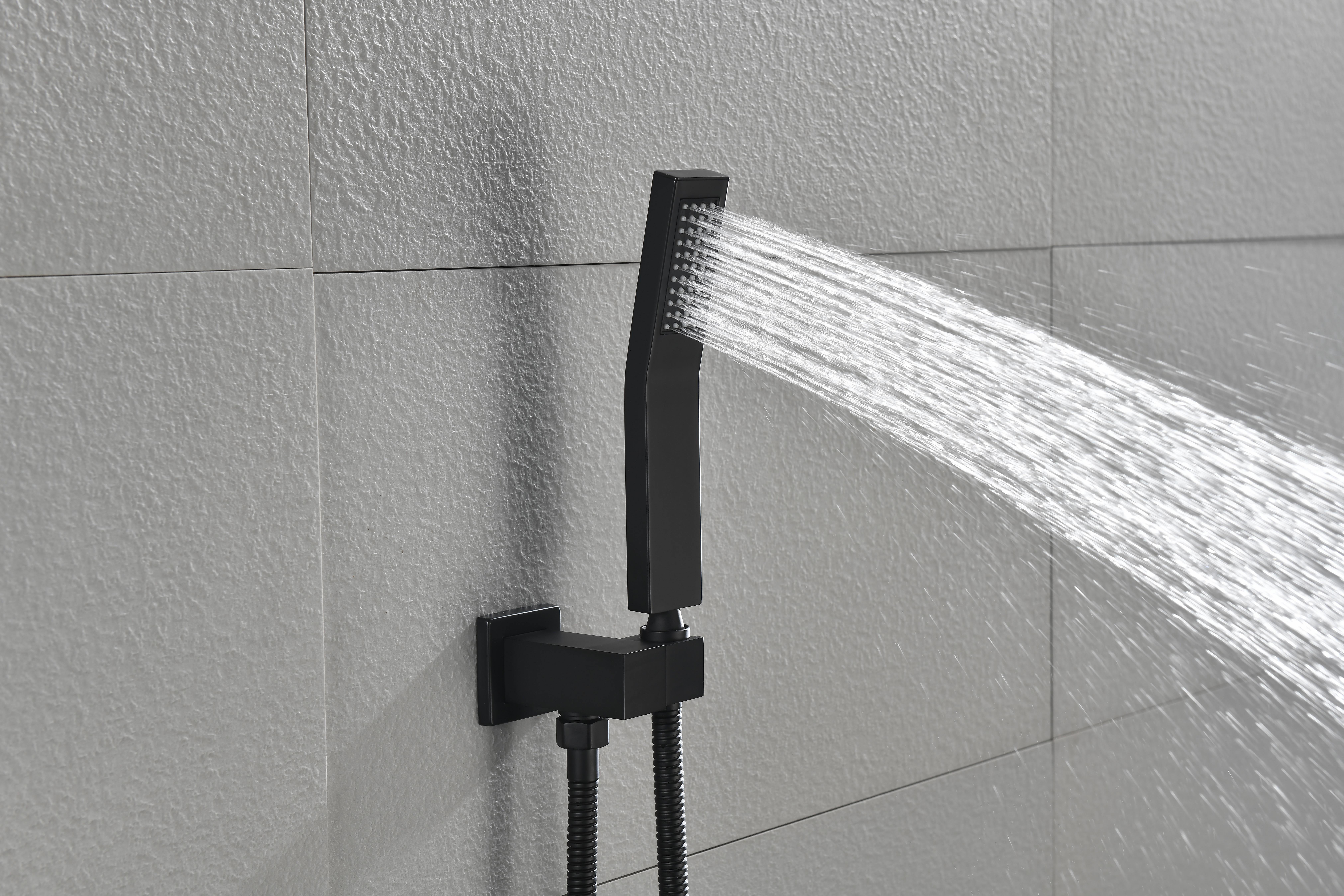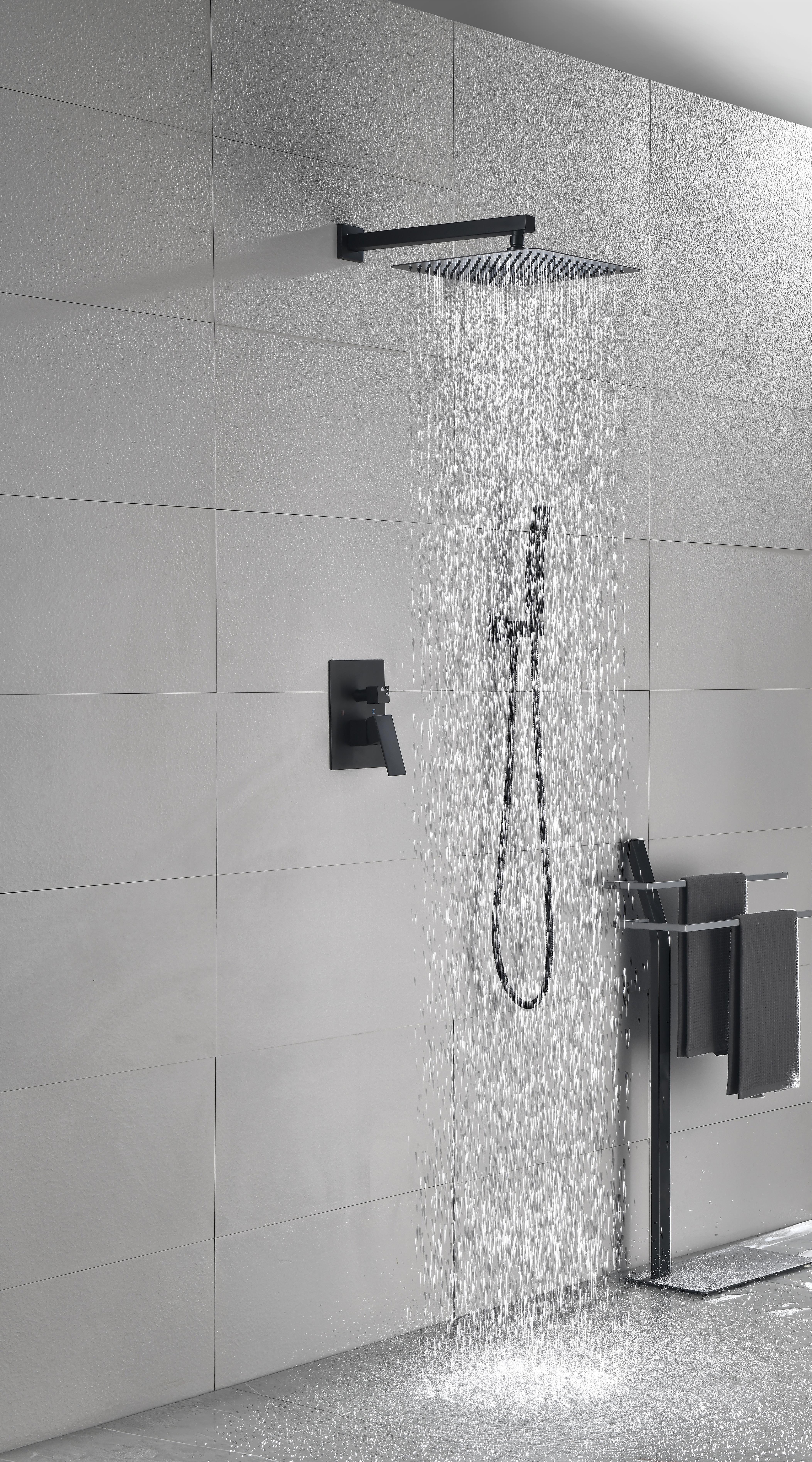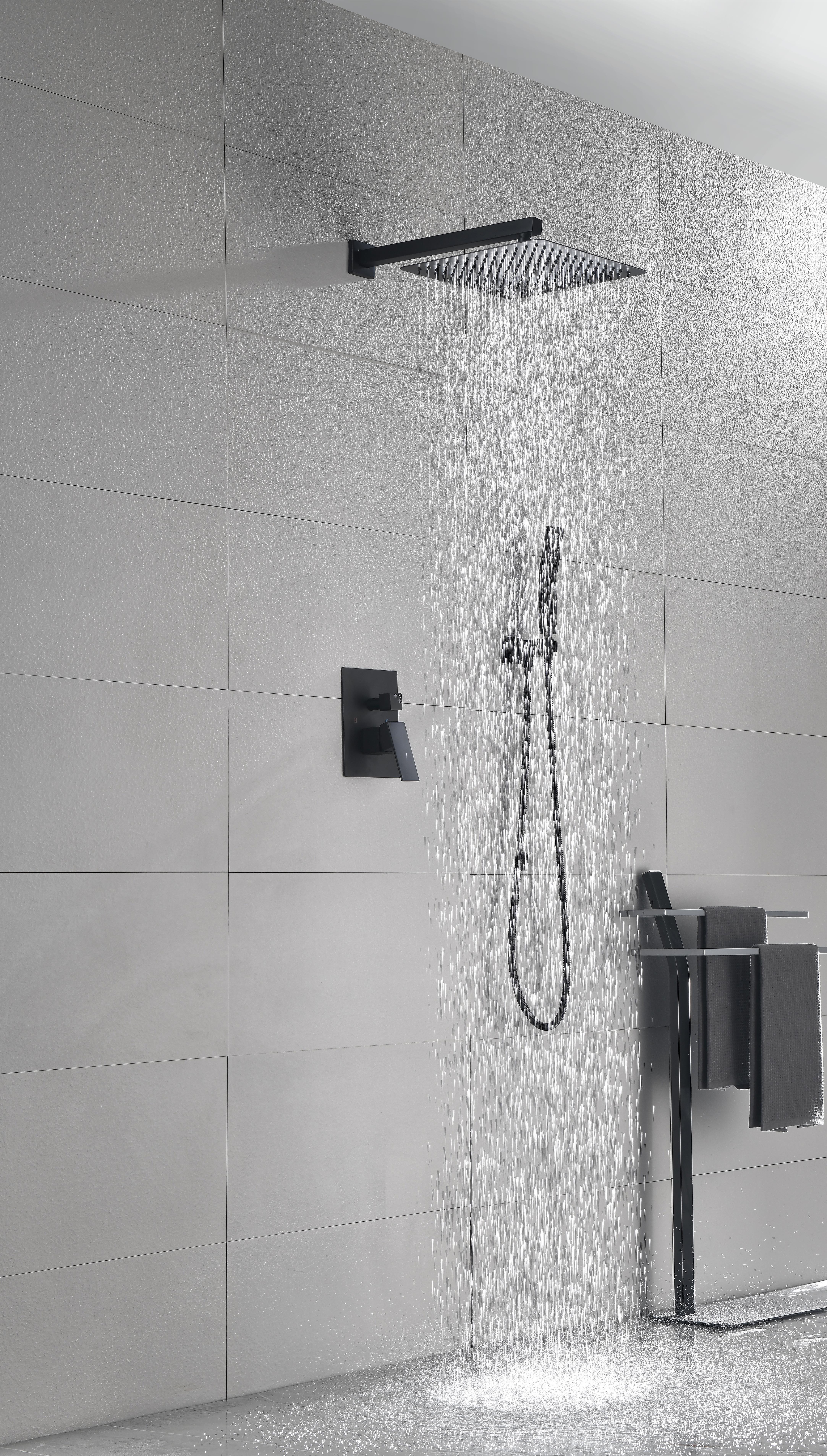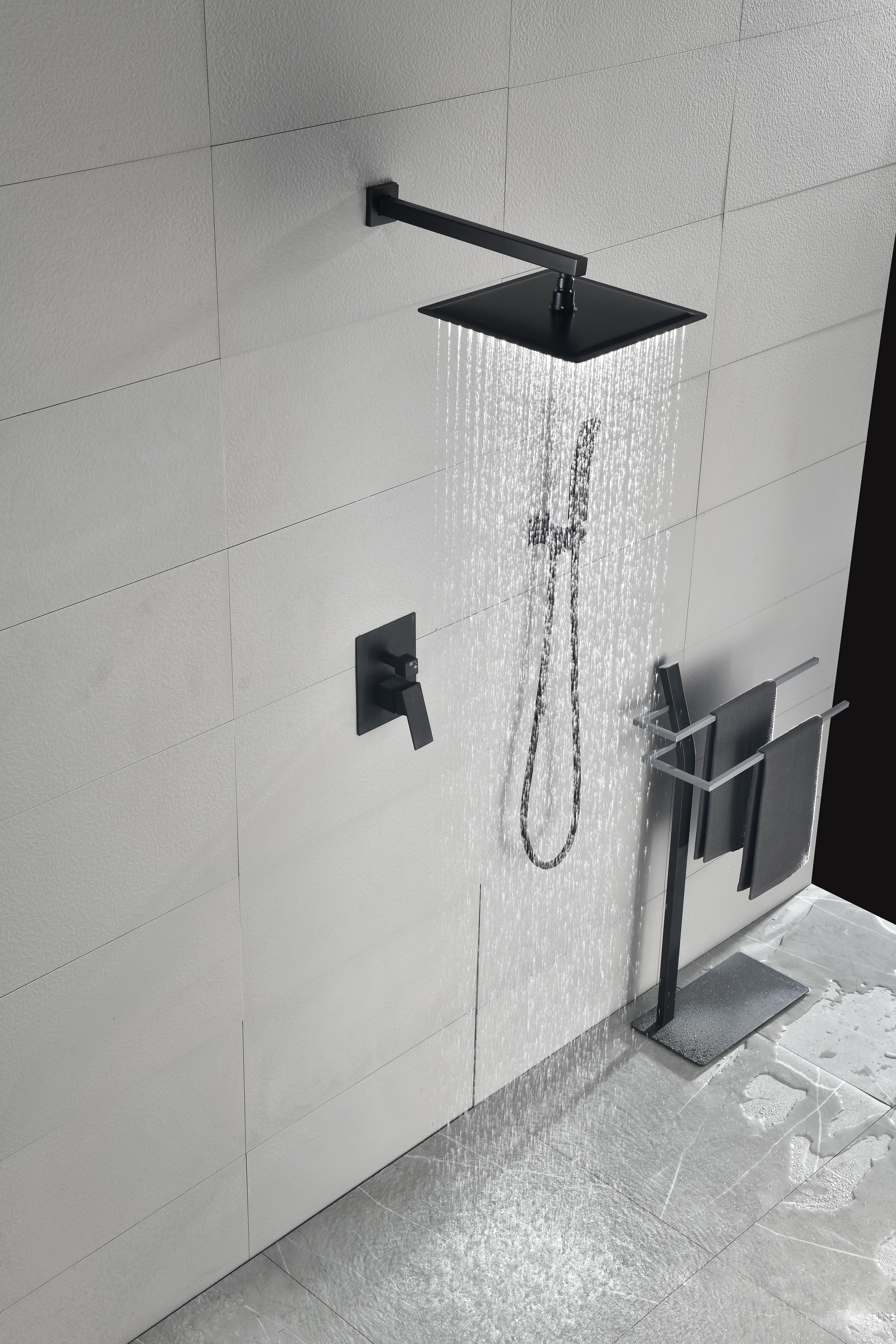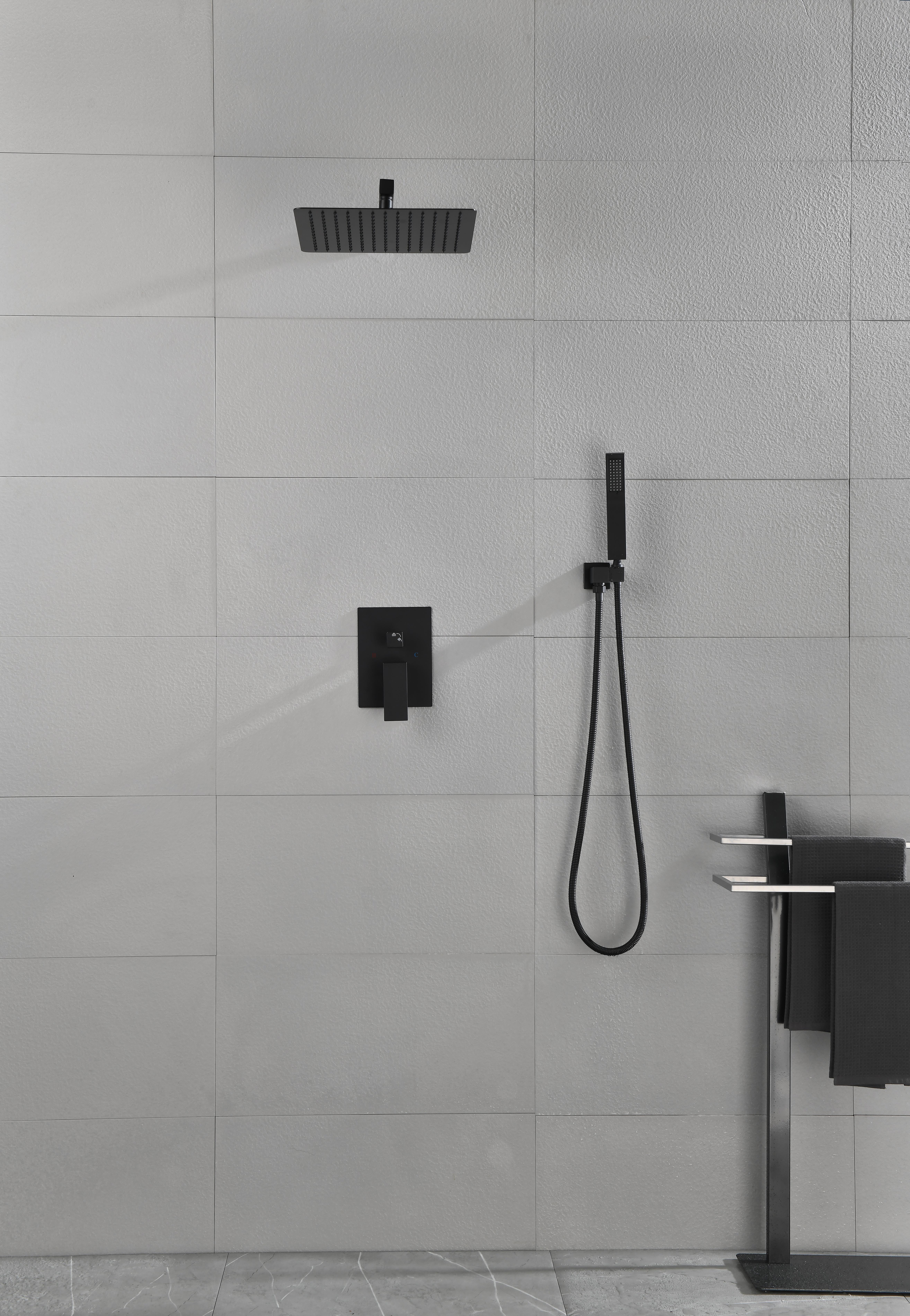 Features:Transform your shower with this modern rainfall shower system. With crisp, clean lines and right angles, it instantly gives a modern look for your bathroom upgrade. Featuring a ultra-thin air injection showerhead, this shower system will provide a consistent, powerful spray that simulates the feeling of raindrops falling down onto your skin, an unprecedented therapeutic massage. A matching hand shower will aim focused spray wherever you want for targeted cleaning and washing.A lasting and eye-catching addition to your bathroom.1.Please note that this product Constructed from solid brass for durability and reliability.2. Finished in a high quality, corrosion resistant .3.Includs 10" (250mm) rain shower head, wall mount shower arm, hand shower parts and 2-function valve.4.Hand shower with 60" (1500mm) rubber hose included.5.Not suitable for low pressure. Minimum required water pressure is 0.05 MPa (0.5 bar).Specifications:Installation Type:Wall MountedShower Head Height: 2.44 "Shower Head Width:9.8 "Shower Arm Length:15.7 "Item Weight: 9.89 poundsPackage Weight:11.44poundsPackage Dimensions: 18.30 x 12.99 x 5.43 inchesFinish:Matte BlackStyle:Contemporary/ModernValve Type:Ceramic DiscShower Head Type:Fixed Showerhead, Handheld ShowerheadMaterial:BrassShower Head Shape:SquareSpray Pattern:RainNumber Of Handles:1Overall Height:Not fixedShower Head Diameter/Width:10" (250mm)Shower Arm Reach:16" / 400mmSpout Reach:N/AConnection Size:0.5Number Of Bodysprays:NoFlow Rat:2.0 GPM / 7.6 LPM (rain shower); 2.0 GPM / 7.6 LPM (hand shower)Valve Included:YesIncluded Components:hand shower, mounting hardware, wall supply holder, valve & trims, shower hose, shower arm, rain shower headAccept unreasonable exchangeContact customer service for details