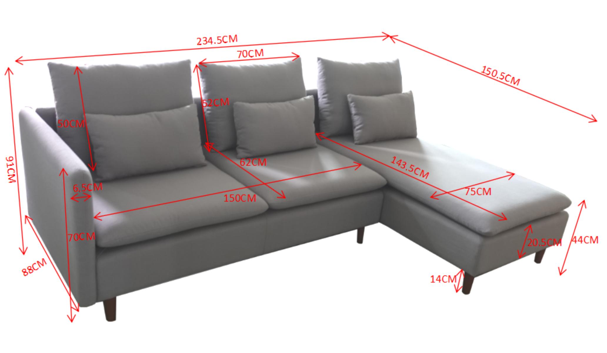 group Corner sofa (gray) Comfortable: In the evening, the whole family is watching a movie in the living room. If you are tired, you can lie on the sofa to rest. This large sofa will allow you and your family to enjoy more relaxing time and family time in the living room.Space: Suitable for multi-person households.Sofa structure: water ripple suede, plastic feet, wooden frame, metal rubber wheels.Easy to clean: If you pour a glass of smoothie from the table and some water splashes on the sofa in the corner, it is easy to clean. Will be wiped immediately, leaving no traces after drying.Chaise longue : very suitable for storing seasonal blankets, extra pillows。 Easy to assemble: The modular sofa can be assembled by one person, but it will be more difficult. It is recommended to assemble it with your family. Sofa size: L92.32’’ X W59.25’’ X H35.82"Packing size: Two digits: L59.00’’ X W32.68’’ X H14.57''Net weight: 66.14 (lbs) Gross weight: 74.96 (lbs)Royal Concubine: L57.10’’X W30.12’’X H14.57''Net weight: 62.83 (lbs) Gross weight: 71.65 (lbs) Sofa bearing capacity: 600 (lbs)Product packaging: 2 pieces