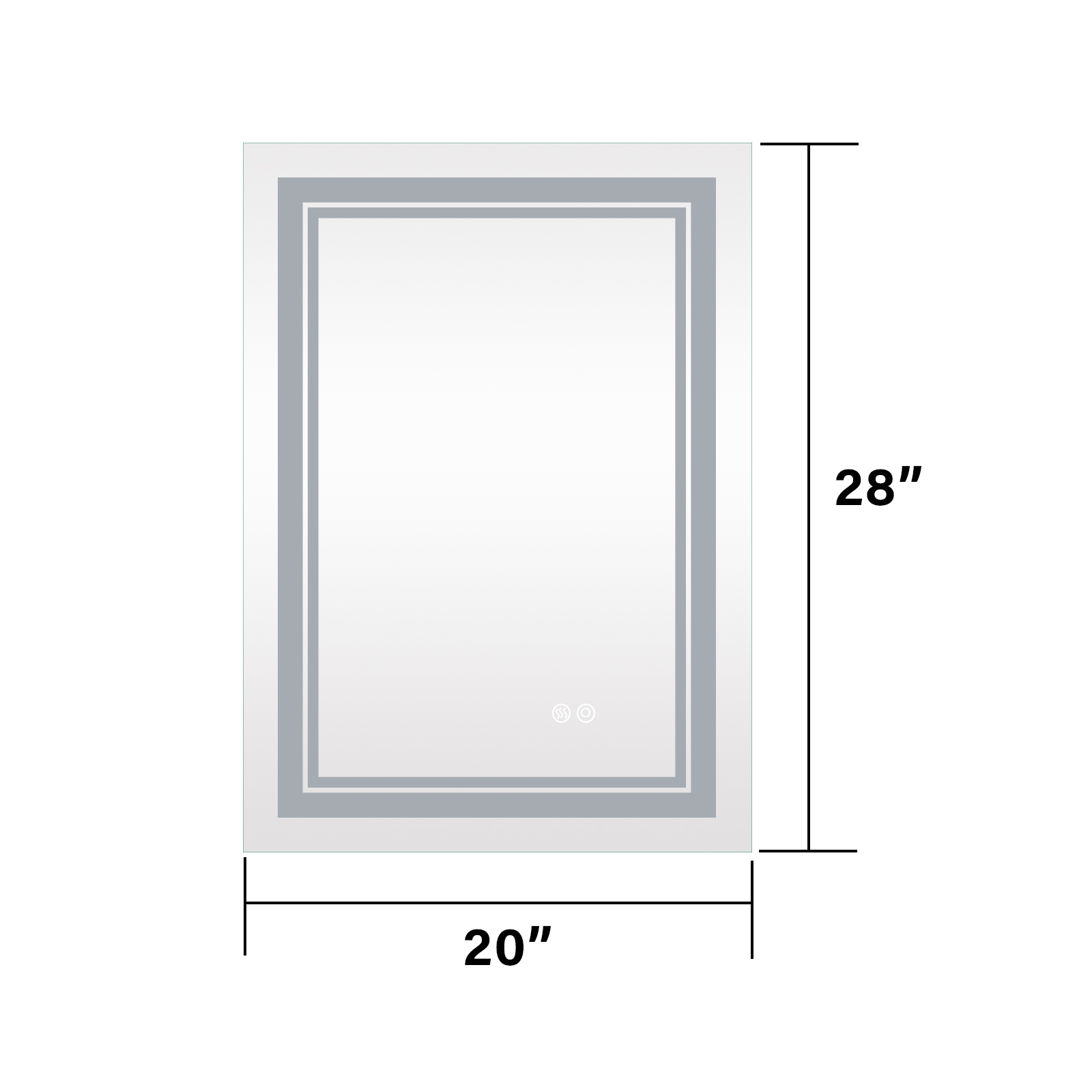 Shape: RectangularProduct Dimensions: 20"L x 28"WMaterial: Anodized Aluminum, GlassMounting Type: Wall MountColor: 3-color TemperatureFrame Type: UnframedItem Weight: 22 poundsPackage include:1 x LED Mirror