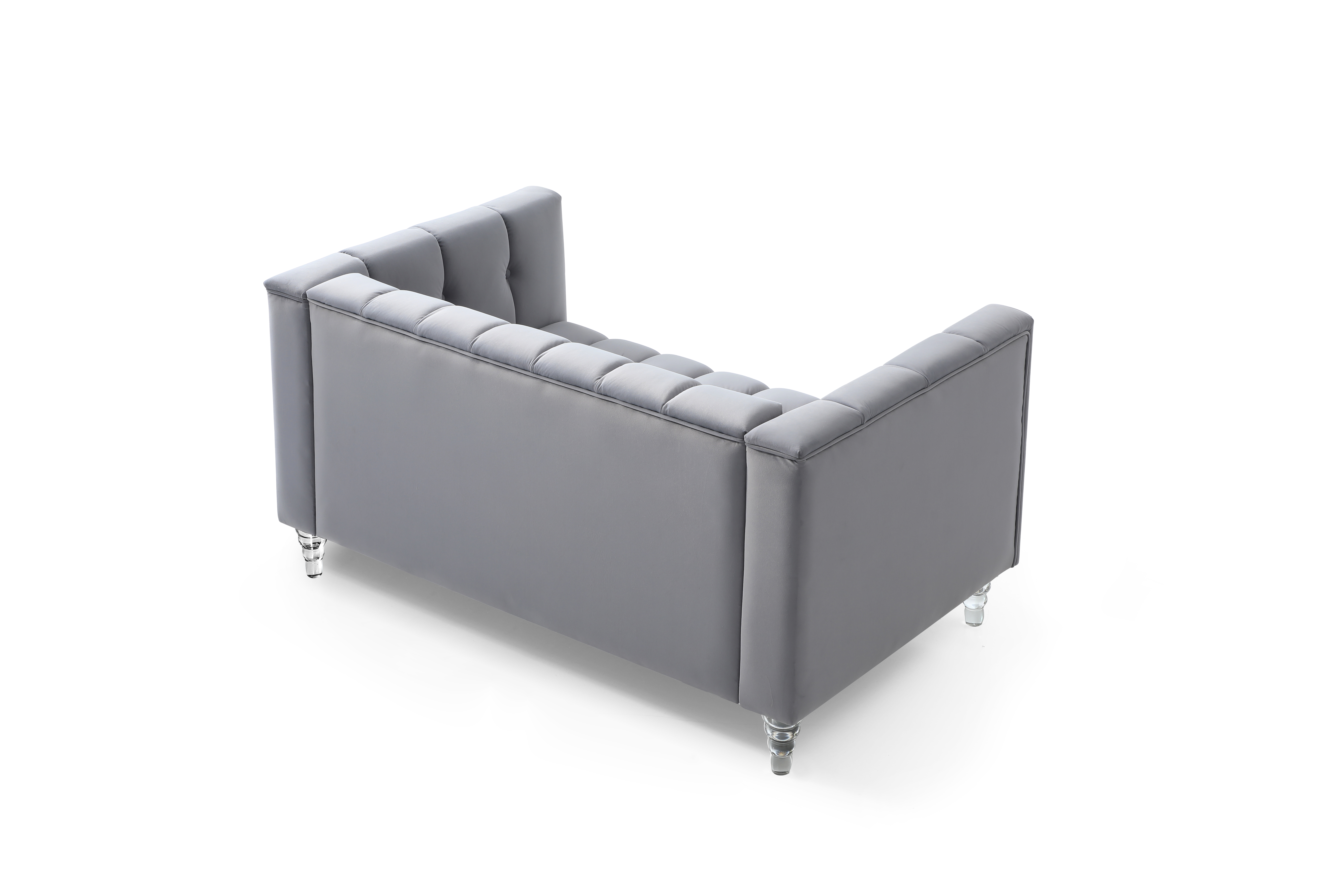 A modern channel sofa take on a traditional Chesterfield, the sofa is a statement - making piece of beautiful design. Rich velvet is chanelled on both the inside and outside of the frame, a beautiful design detail that can be seen from any angle in a room.acrylic leg,like crystal ,transparent ,clean cool and luxury.Single "bench" cushions allow for comfortable multi person seating without cushion separations.