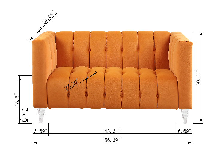 A modern channel sofa take on a traditional Chesterfield, the sofa is a statement - making piece of beautiful design. Rich velvet is chanelled on both the inside and outside of the frame, a beautiful design detail that can be seen from any angle in a room.acrylic leg,like crystal ,transparent ,clean cool and luxury.Single "bench" cushions allow for comfortable multi person seating without cushion separations.