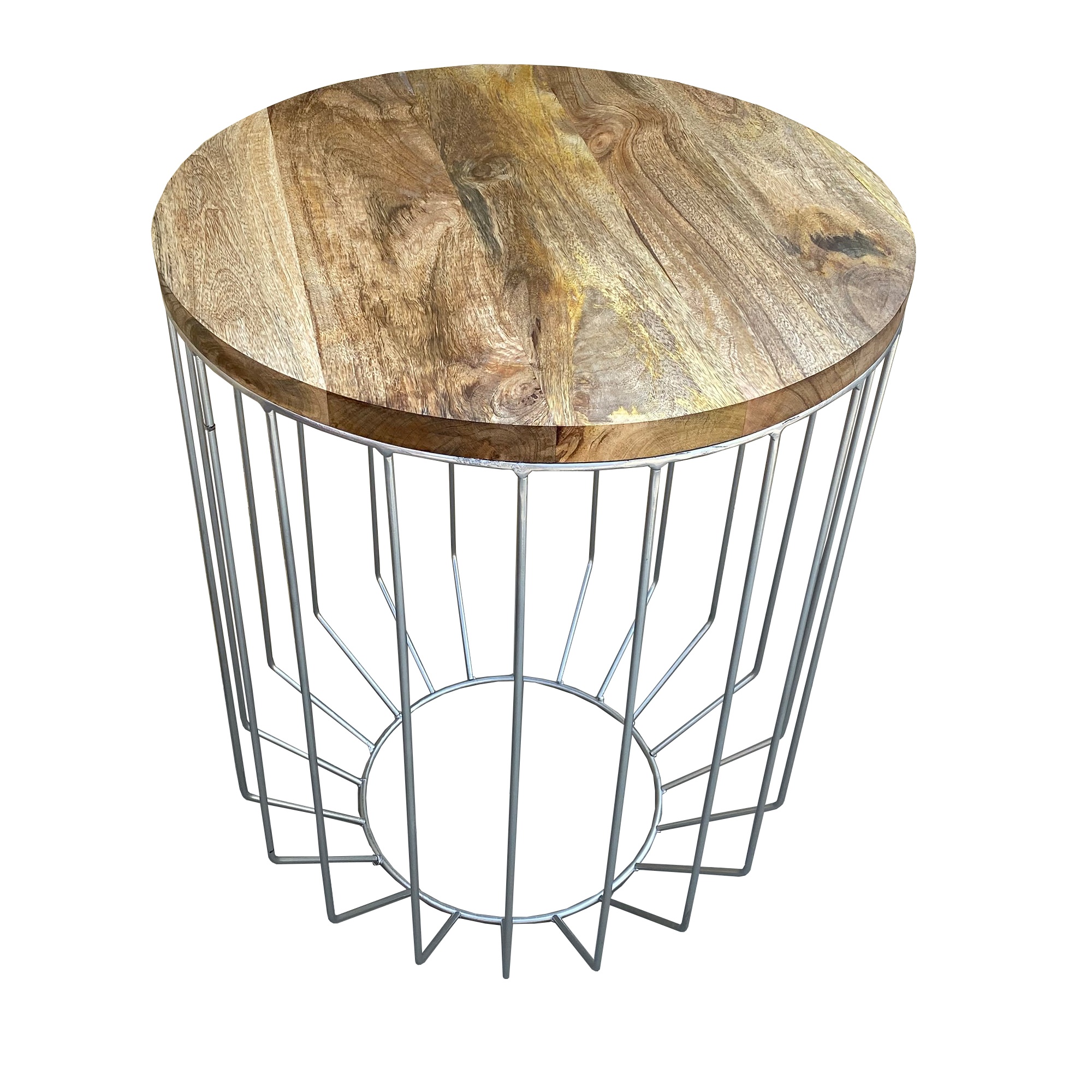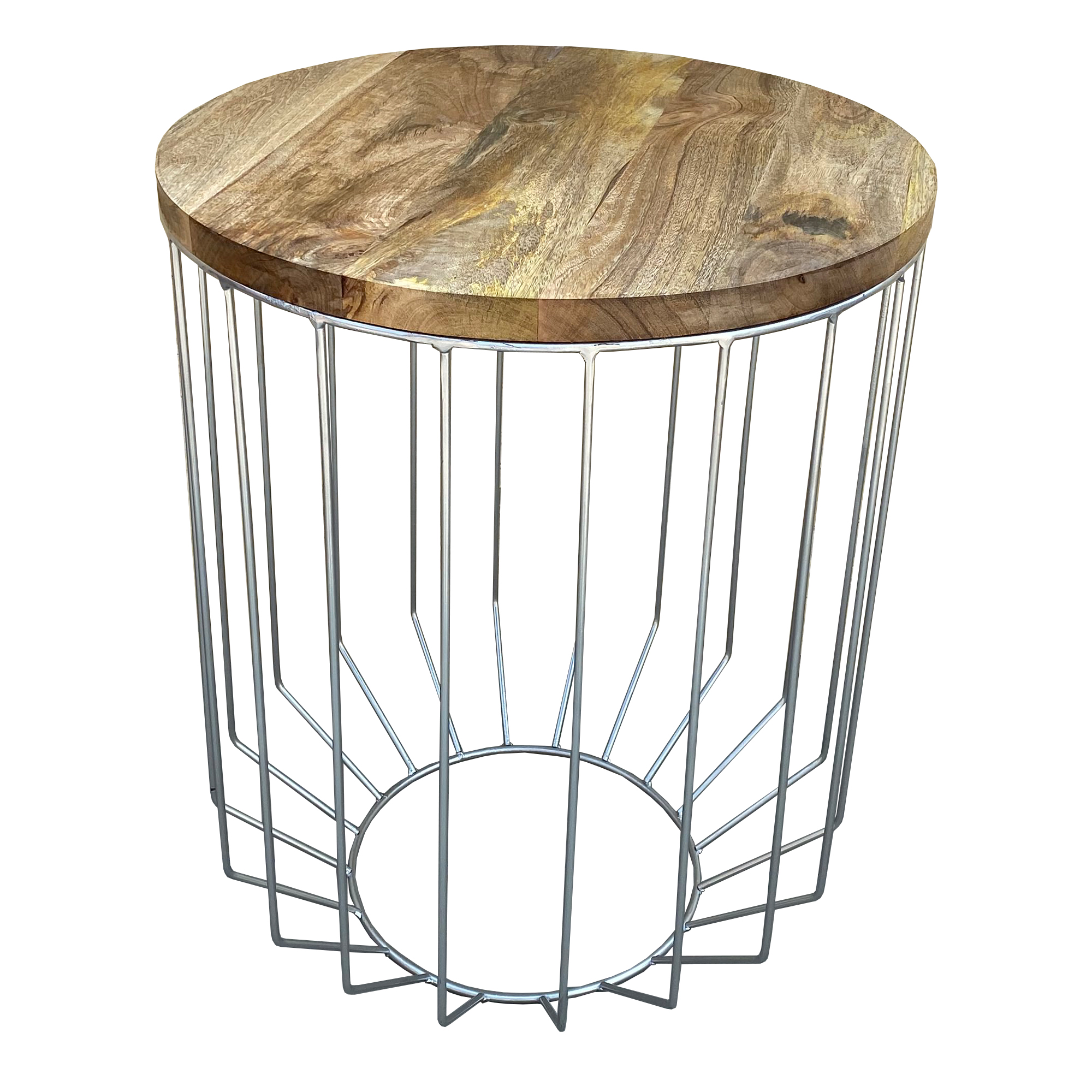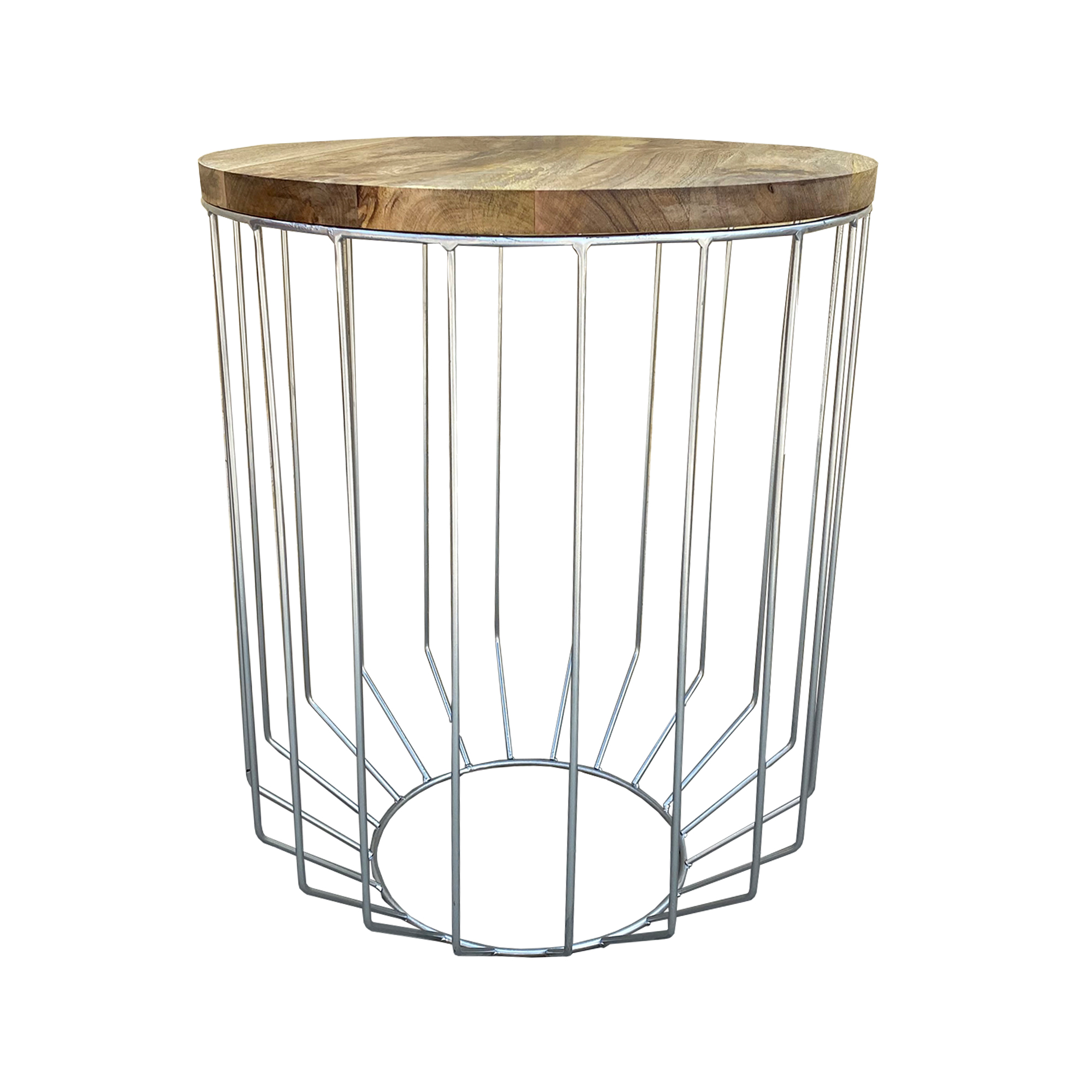 Dress your home in convenience and style with this durably crafted side end accent table. The spacious round wood finished top rests firmly atop a chrome finished cage base, striking a perfect balance of elegance and industrial flair, perfect for your living room, hallway, foyer, or lounge . The slatted base lends a unique and attractive appeal while also ensuring maximum stability and firmness. With fine craftsmanship and a gorgeous combination of colors, this piece will surely stand out when placed alongside a sofa, accent chair, or workstation.