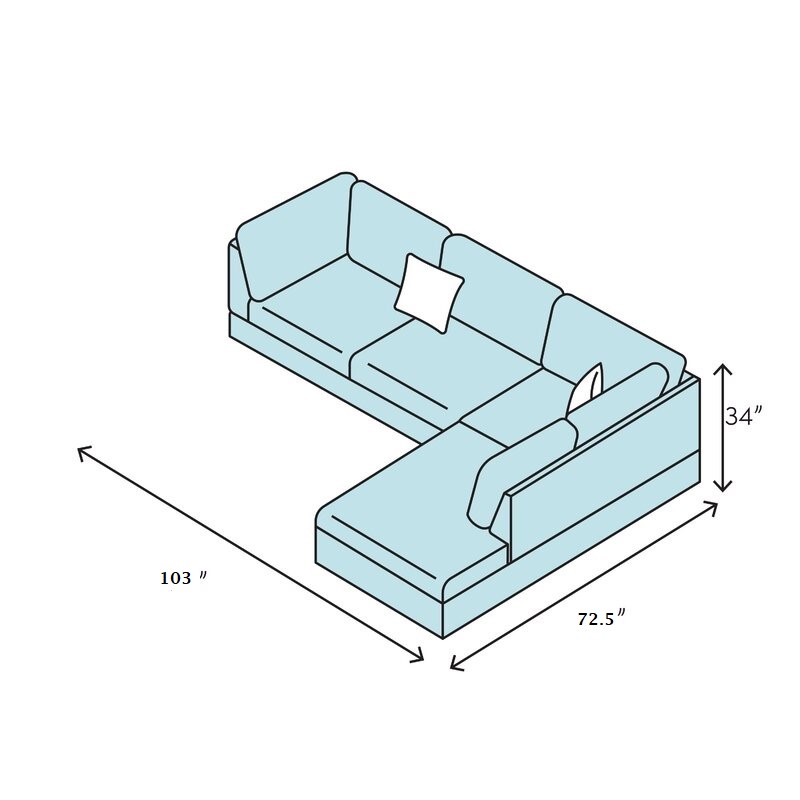 Sectional sofa overall approximately dimension: 103" x 73.5" x 32" high