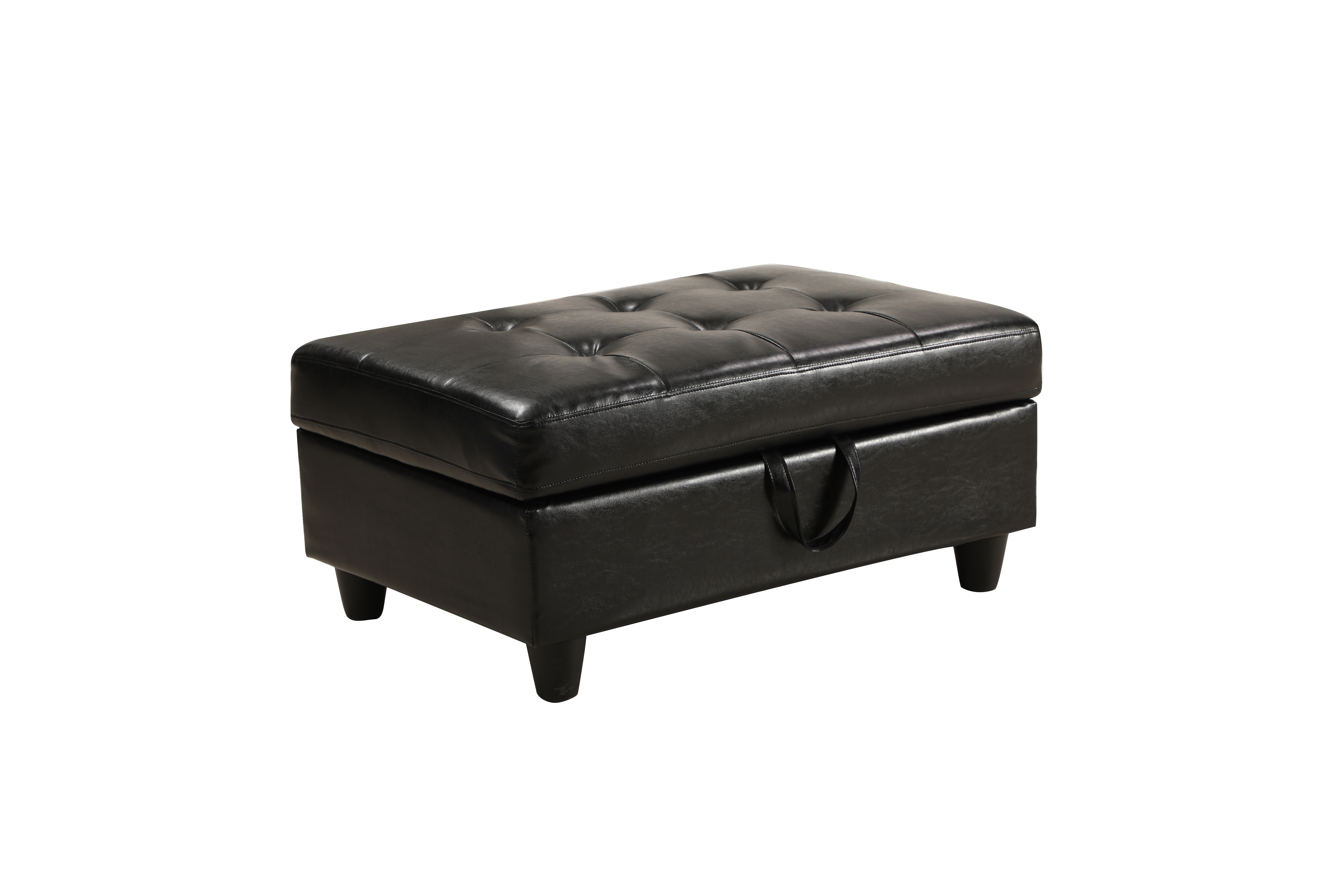 3 PC Sectional Sofa Set, (Black) Faux Leather Right -Facing Sofa with Free Storage Ottoman