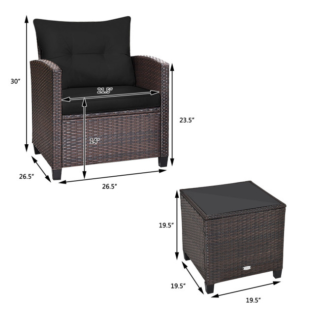 It can be used as a cozy corner in the garden, backyard, porch, pool, and cafe shop both for indoor or outdoor space. Comes with a tempered glass top table, not only can you place some drinks or snacks on the hard tabletop to take conveniently but also some decors like a vase can be put on the tabletop. The sofas are equipped with a back and seat cushion which will give you excellent comfort. And the cover of the seat cushion has a zipper for removing and rinsing easily. It's perfect to relax and enjoy time with your friends and family.