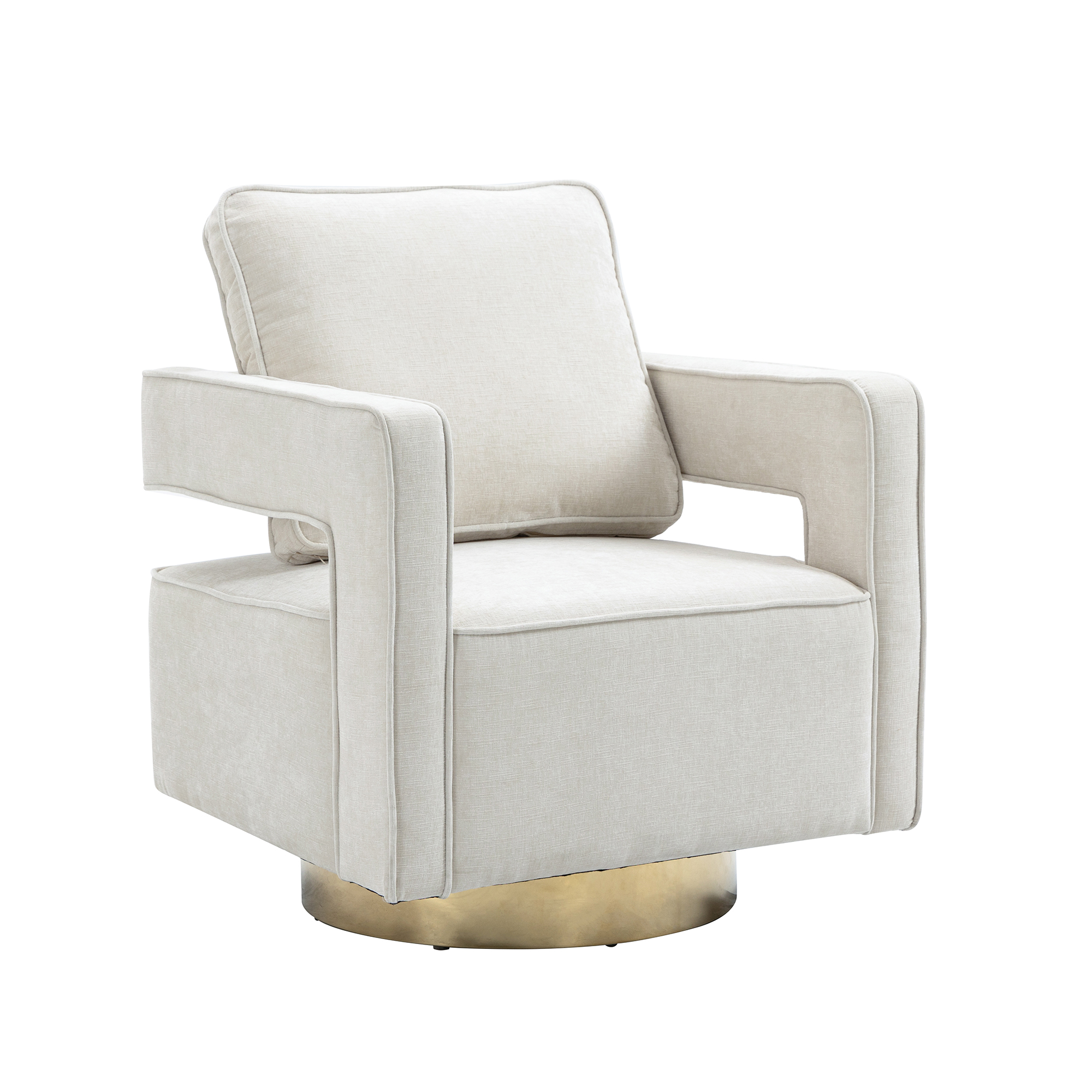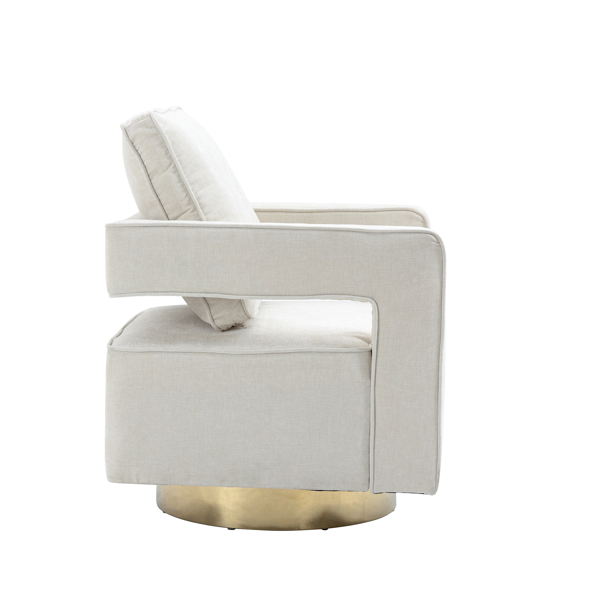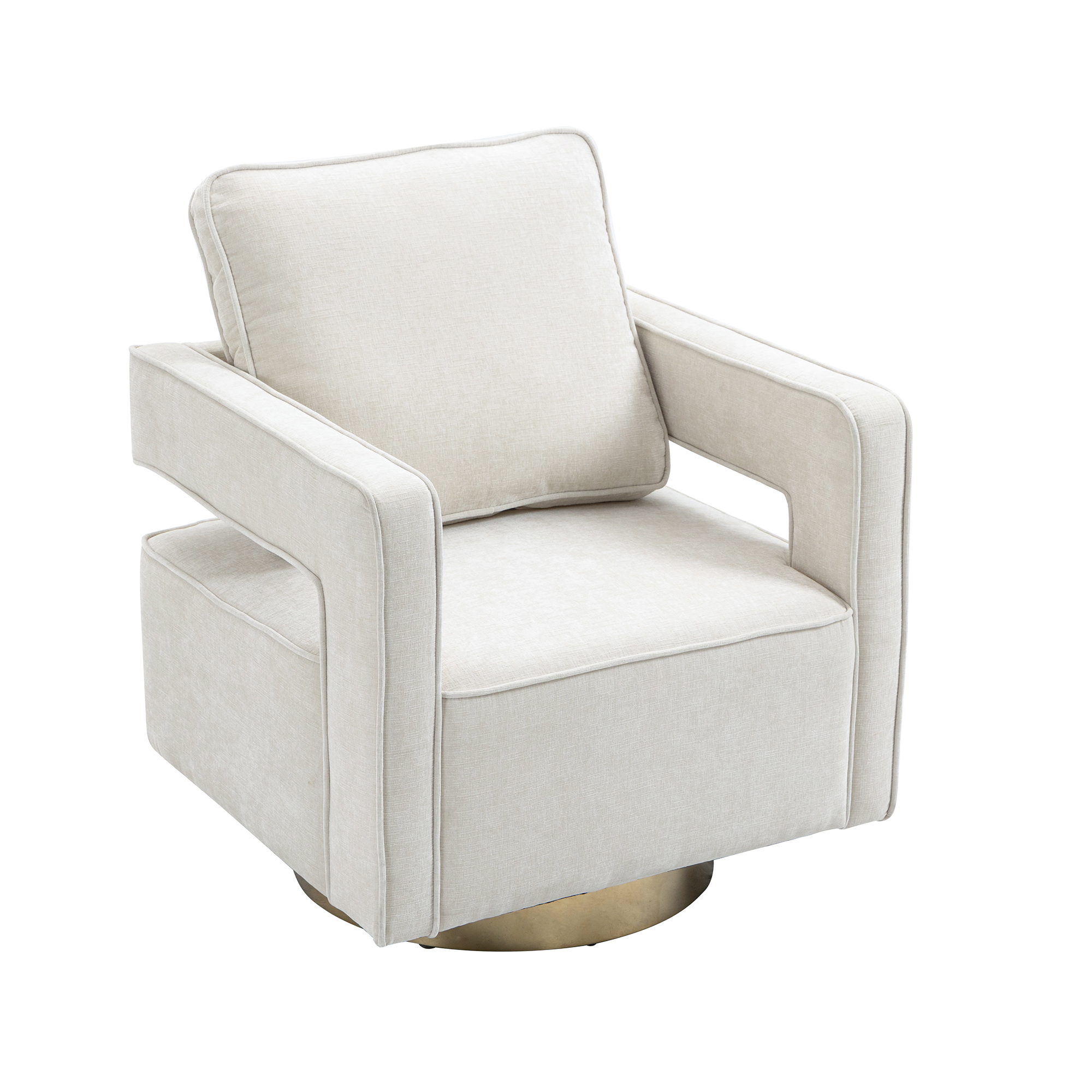30.7'W Swivel Accent Open Back Chair Modern Comfy Sofa Chair With Gold Stainless Steel Base For Nursery Bedroom Living Room Hotel Office, Club Chair Leisure Arm Chair For Lounge (Beige Chenille)