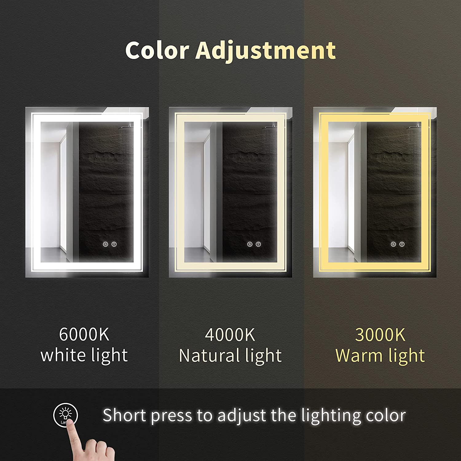 32*24 LED Lighted Bathroom Wall Mounted Mirror with High Lumen+Anti-Fog Separately Control+Dimmer Function