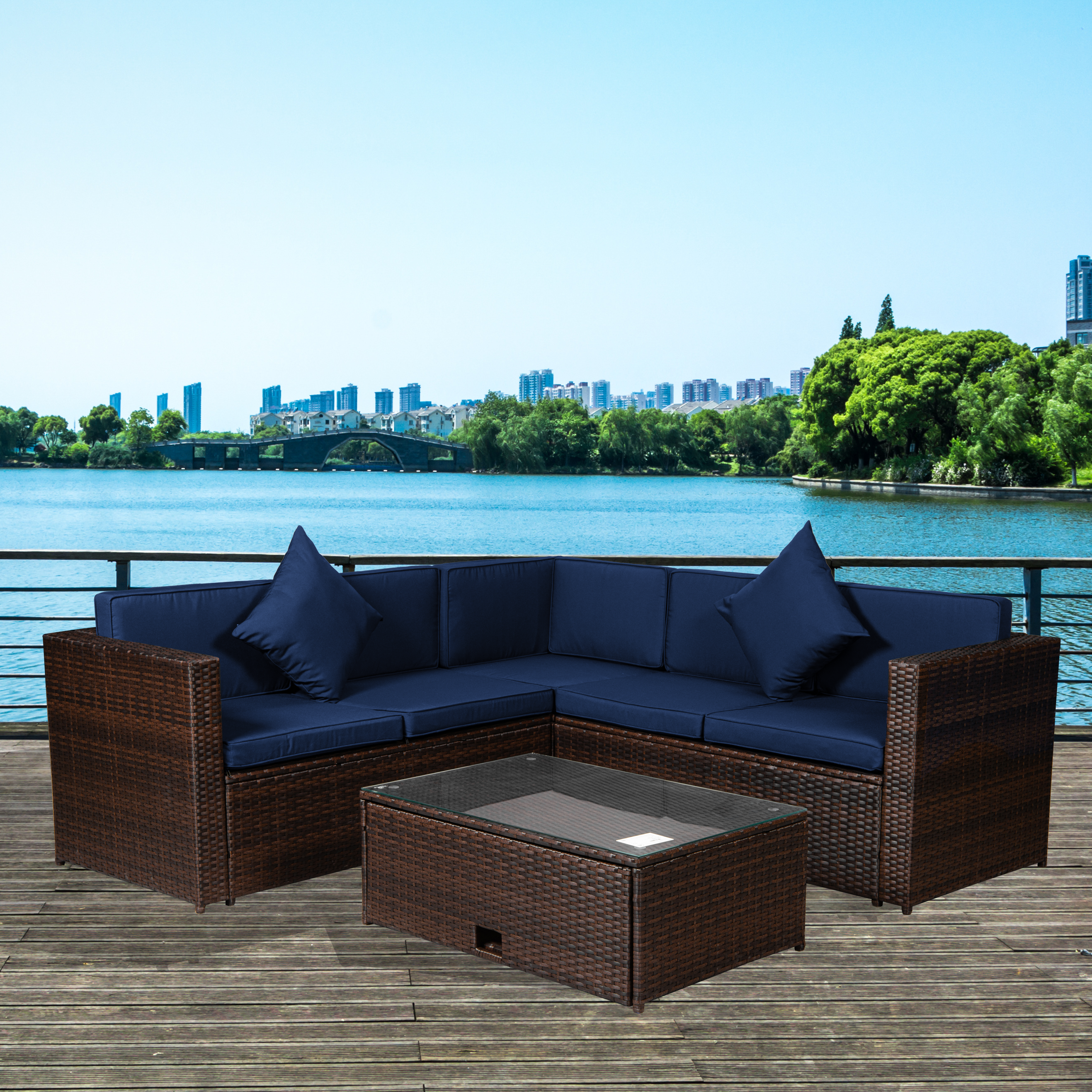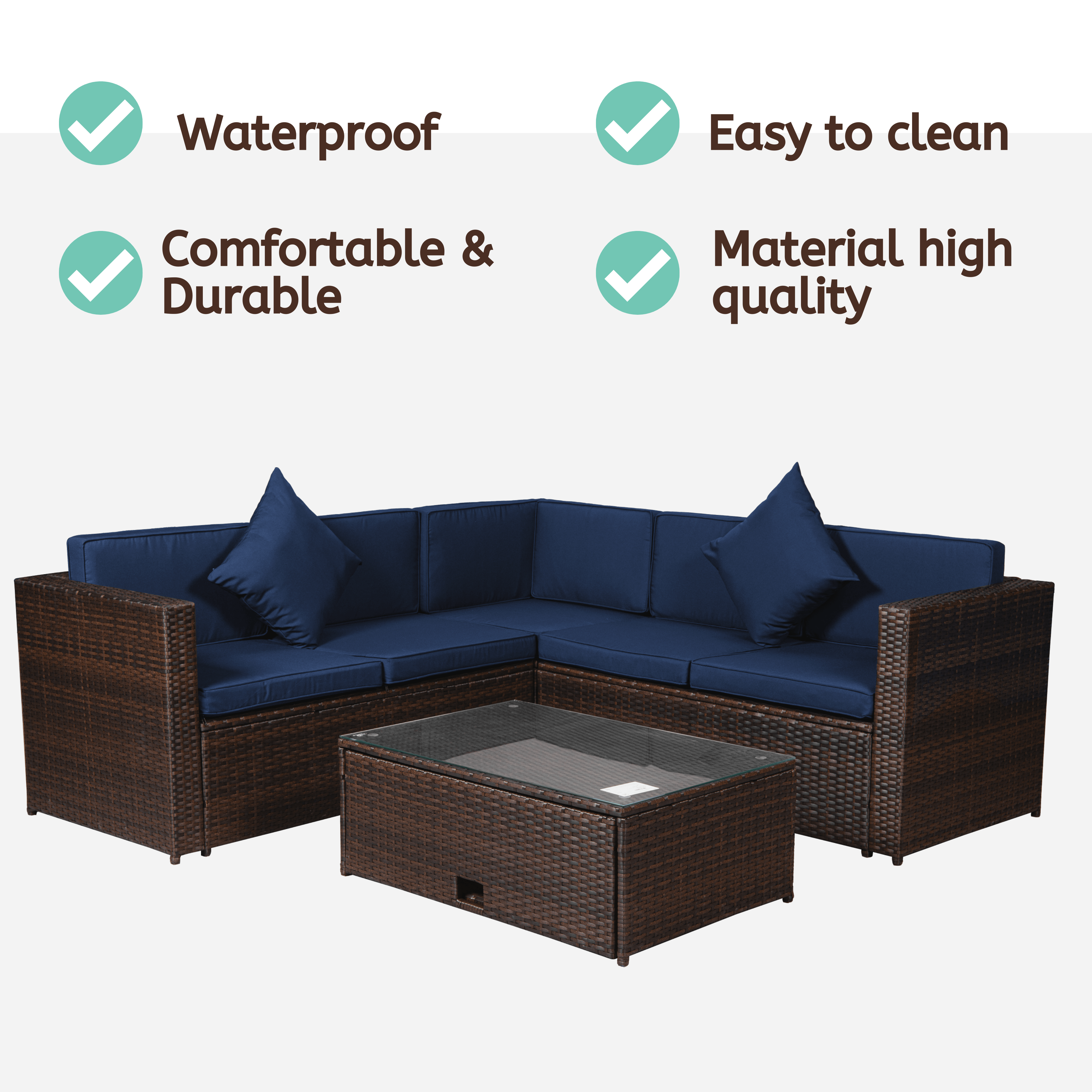 | Material | PE Rattan, Powder-coating steel frame. Polyester Fabric, Foam & Tempered-Glass |