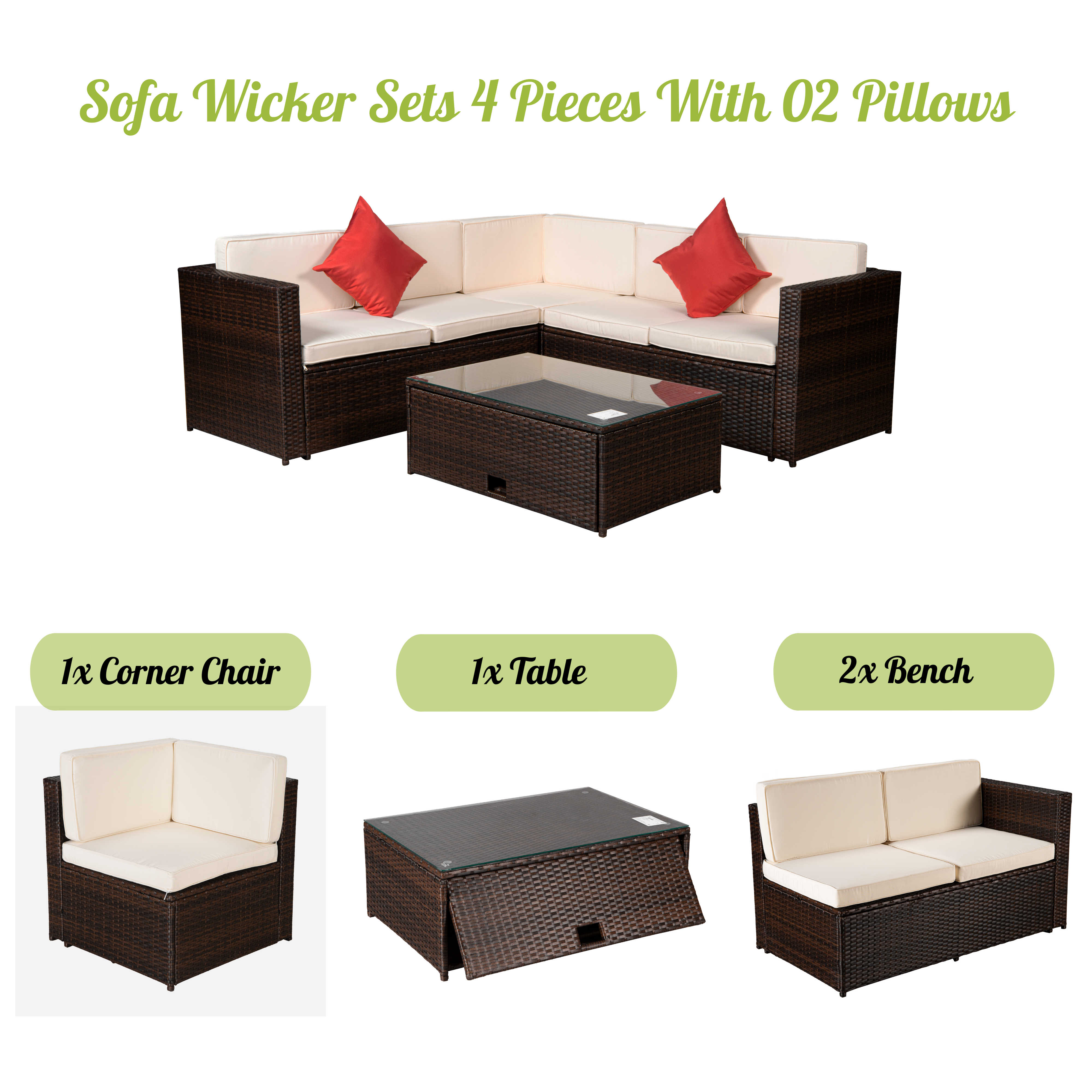 | Name of product | Wicker Sofa Set 4 Piece With 2 Pillows |