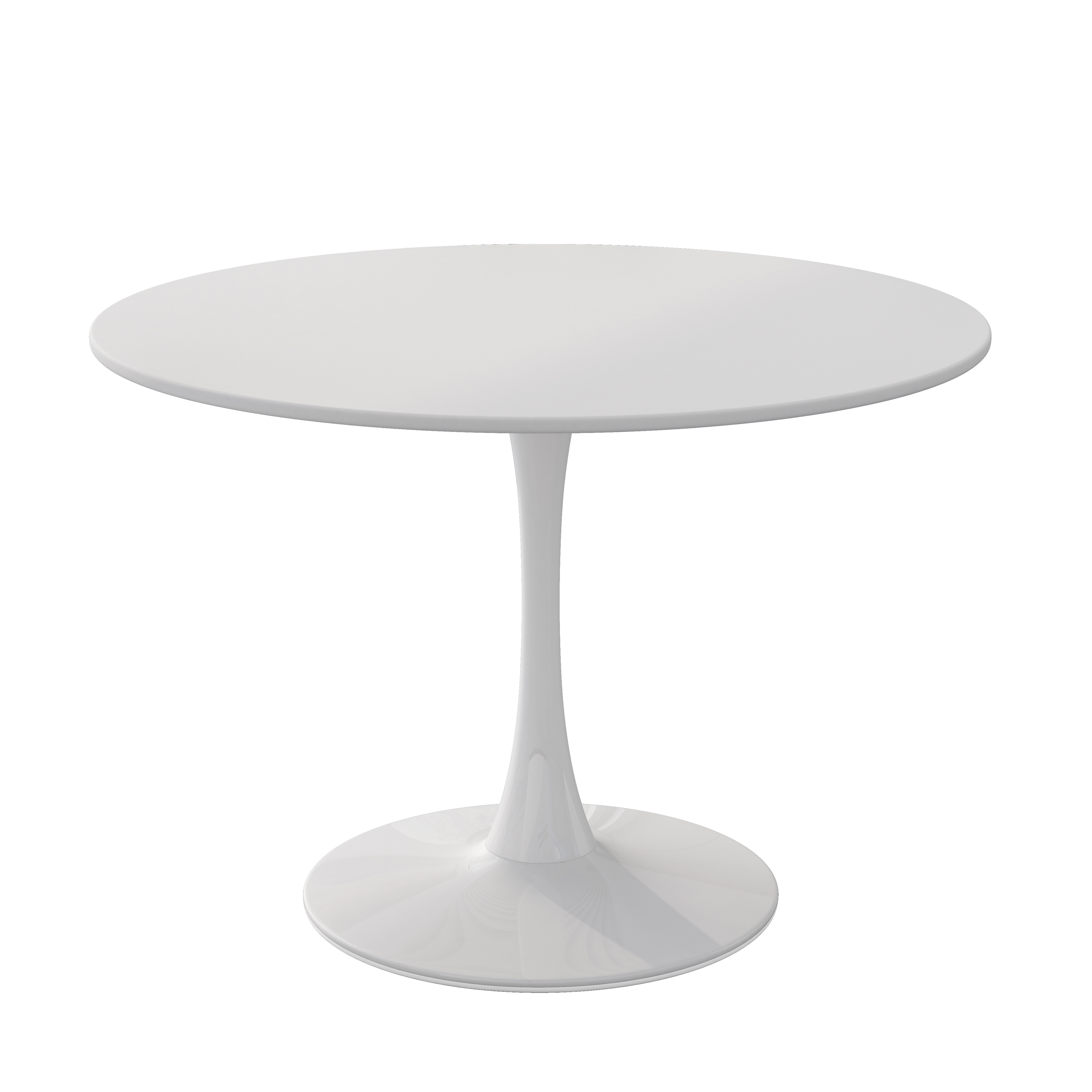 This round dining table creates a romantic atmosphere for two in the small space, you can also add two chairs to invite your friends and family to sit and chat at the round table. Romantic modern round dining table is perfect for small family gatherings or friends gatherings.Features:1).High Quality Material:This white round dining table uses a combination of high quality MDF top and high quality metal iron, which provides a solid base for the white modern round dining table, and also allows you to get better when applying the white dining table use experience.2).Sturdy and Durable:This round dining table top is constructed of high quality material, combined with meticulous craftsmanship, plus the stability of the metal frame,the connection between accessories is compact, which is sturdy and durable.Solid well-crafted table durable and sturdy use for years.3).Reasonable Load-bearing Capacity:In order to meet a variety of requirements in your daily life, the load-bearing capacity setting of this dining table is reasonable and practical.The load-bearing capacity of the tabletop is 220 lbs. In that case, you can put most of daily sundries on the tabletop and shelf without worried about the load-bearing issues. 4).Easy to assemble and maintain:the simple design makes assembly very easy, all hardware and detailed instructions are provided, and the workbench is easy to complete. The smooth surface is easy to clean and can help you save a lot of time and effort.Specifications:1.Materials: MDF top, metal legs 2.Care instruction: Clean with a damp cloth & dry immediately3.Color: White4.Product Overall Dimension: 42.12"*42.12"*29.33"5.Gross weight: 43.1Ibs Net weight: 38.69Ibs6. Weight capacity: 220Ibs