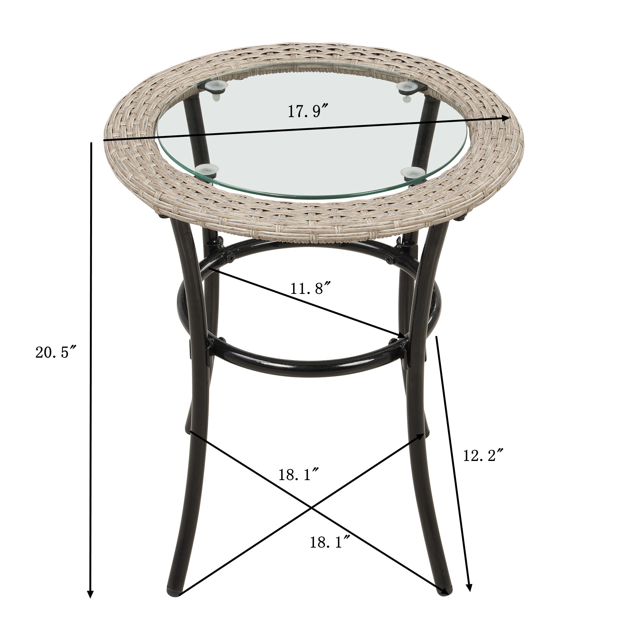 【Dimensions】Single rattan chair:27.2 x 22.8 x 32.1 inches (L x W x H). Single stool: 20.3 x 17.1 x 13.4 inches (L x W x H). Coffee table: 17.9x 17.9x