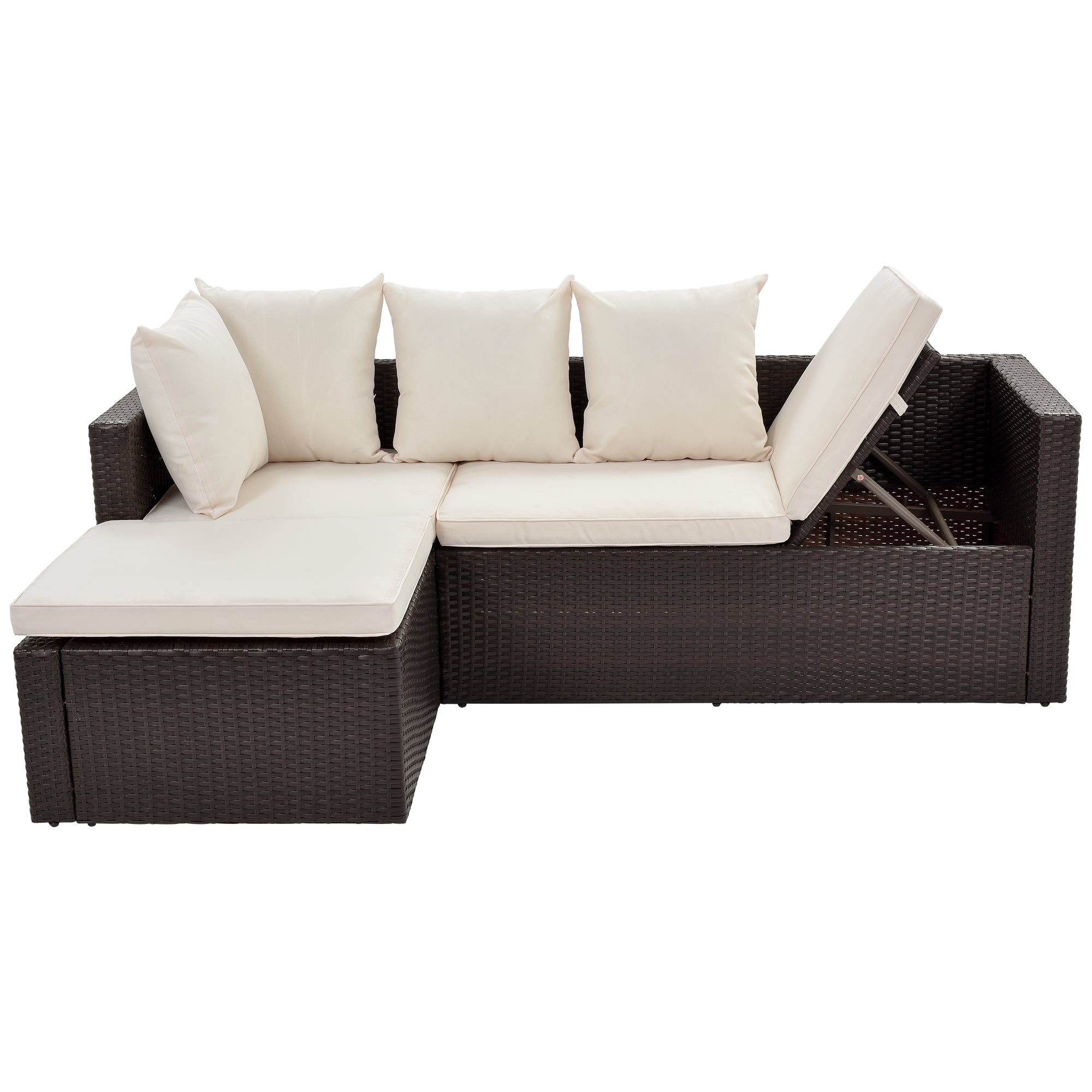 Reclining Backrest: An adjustable backrest allows you to choose from 3 different positions so you can sit up, lean back, or lay down completely flat. No matter which position you choose, just enjoy your best time with this wicker sofa.