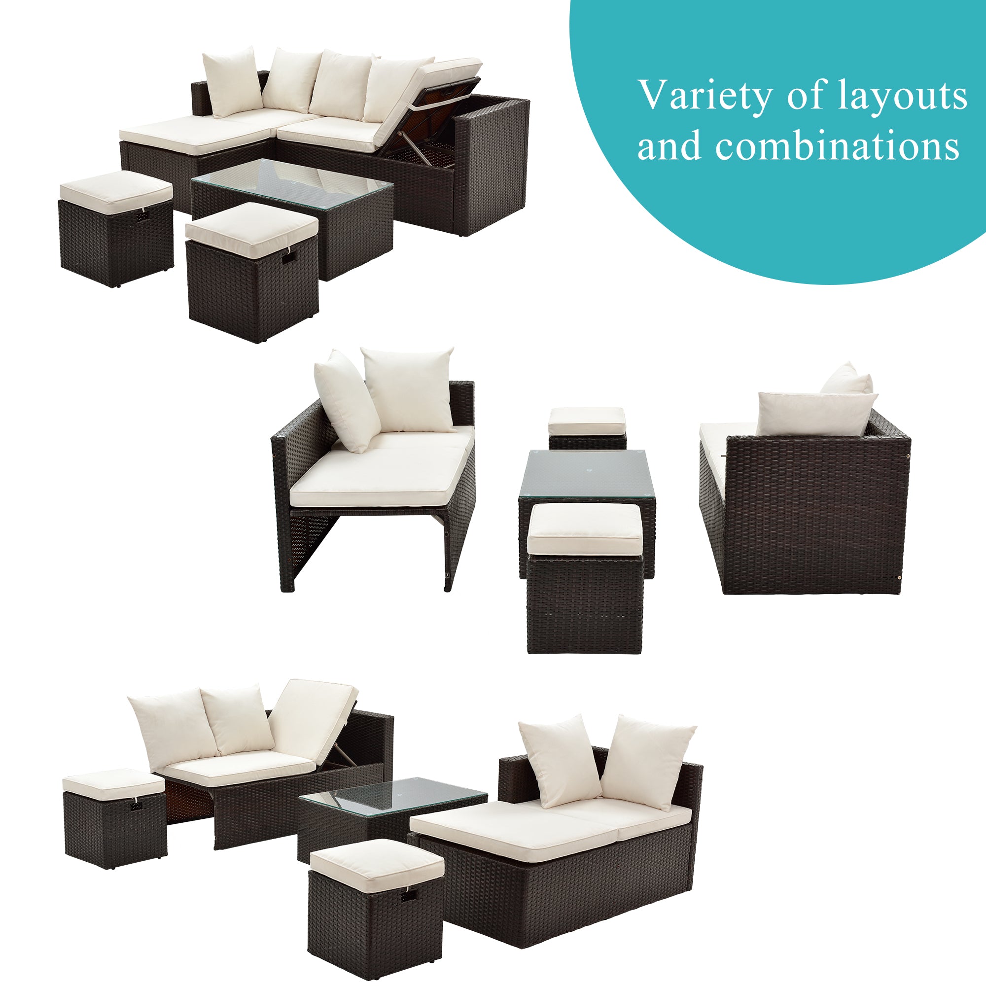 Free Combination: Patio furniture Sectional sofa sets freely rearranged into different combination for different occasion, Widely used for outdoor patio, porch, backyard, balcony, poolside, garden and other suitable space in your home.