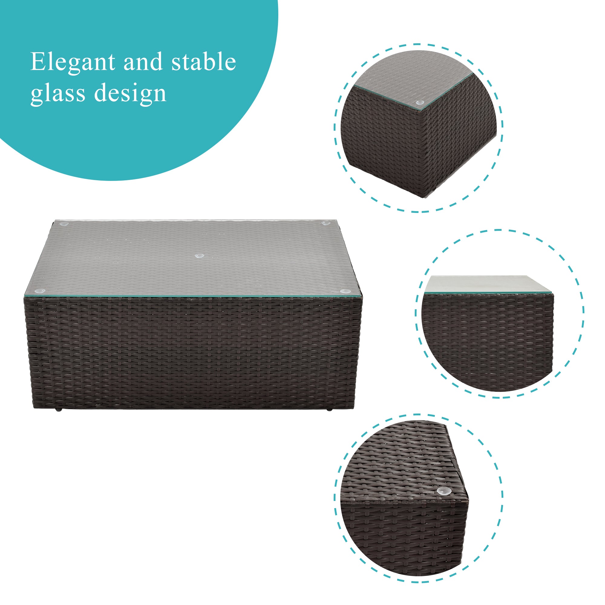 Material | PE Wicker +Steel frame + Glass + Polyester+ Sponge |