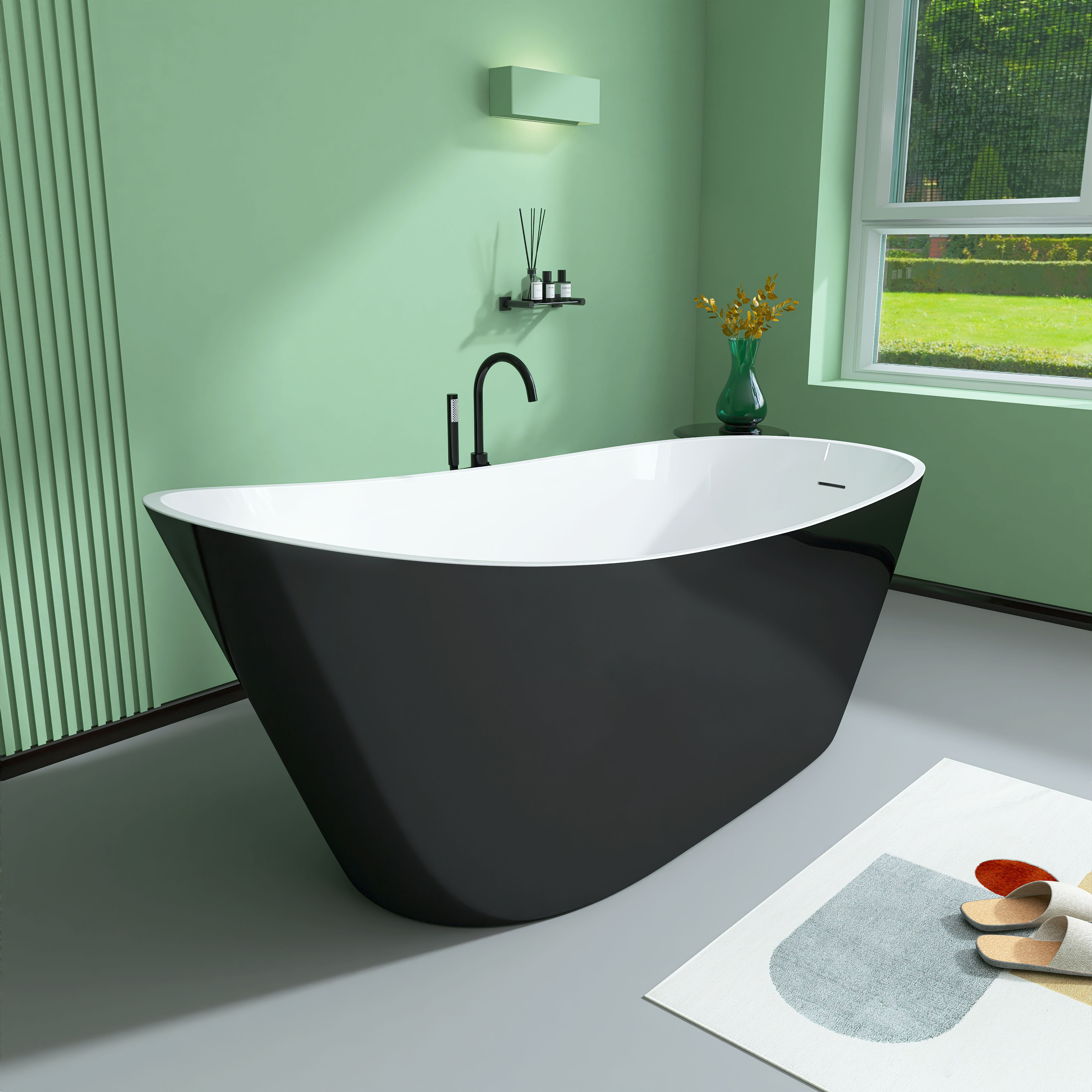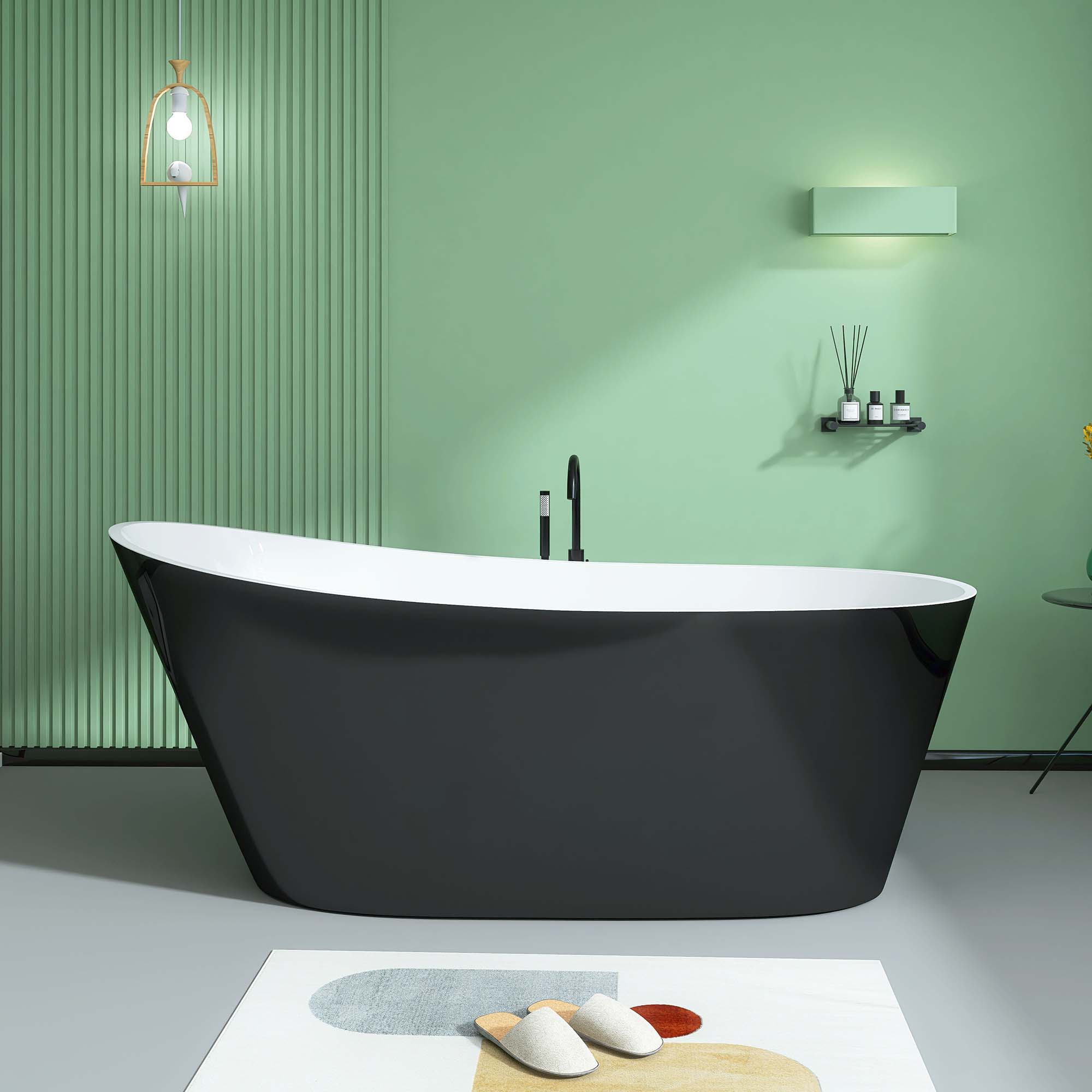 The 59-inch length and 14-9/16 inch soaking depth of this acrylic free standing tub allow for a deep soak but less space occupation. Streamlined form gently sloping ergonomic design black soaking tub following the natural curves of your body to provide exceptional comfort, full support to your back and lumbar to enjoy a relaxing soak in our free-standing tub.