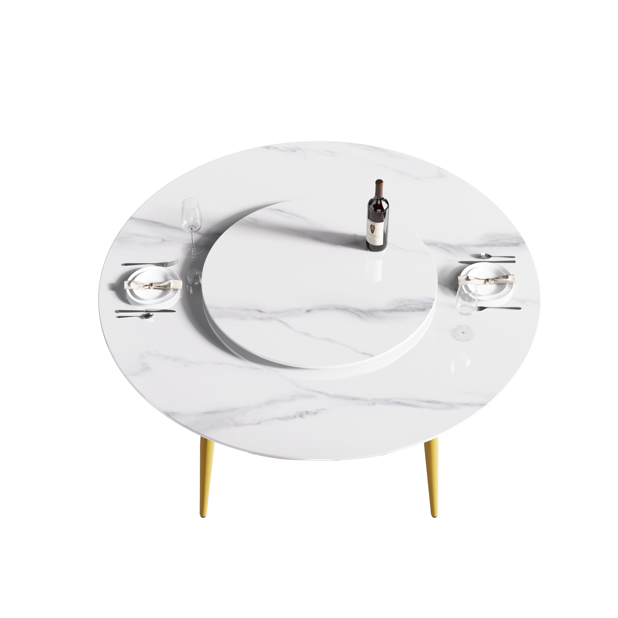 This modern and simple dining table will become the core of your dining, because it is not only the place where you hold dinner and family dinner, but also adds beauty to your space. Undoubtedly, the most striking thing about this dining table is the contrast between the snow-white panel and the aesthetic texture on the table top. Candlesticks can be placed on the big space desktop to create a romantic atmosphere for loved ones and create a beautiful environment for family dinners and delicious food ~Product description:[White Simple Appearance] This round table is made of artificial stone, and it is made into a perfect dining table with exquisite craftsmanship. It can accommodate 8 people. The hollowed-out base adds a touch of medieval simplicity to this table.[Strong dining table panel & easy to clean] Desktop is one of the strongest surfaces, made of sintered stone, which is pressed into a blade shape after heating, providing you with a desktop that can be used for many years. This material can prevent burns, stains and scratches, and has the characteristics of heat resistance, fire resistance and antifouling.[Rotatable disk] Adding a rotatable disk to the dining table can increase the area of the dining table. The rotating design can make everyone in the family taste every dish easily.Product advantages:[Anti-fouling & easy cleaning] Extremely low water permeability can make oil or liquid impermeable, and the desktop can be kept clean only by wiping.[Fire resistance and high temperature resistance] When in direct contact with high-temperature objects or flames, it will not deform, crack or emit gas or odor.[Using natural materials] Natural materials do not release harmful substances, and are 100% recyclable. No radiation, direct contact with food.Warm tip:During the processing of natural materials, there will be subtle changes in color tone, surface texture and texture, and there will be subtle differences with pictures, which is a normal phenomenon. Natural changes are not regarded as product defects.