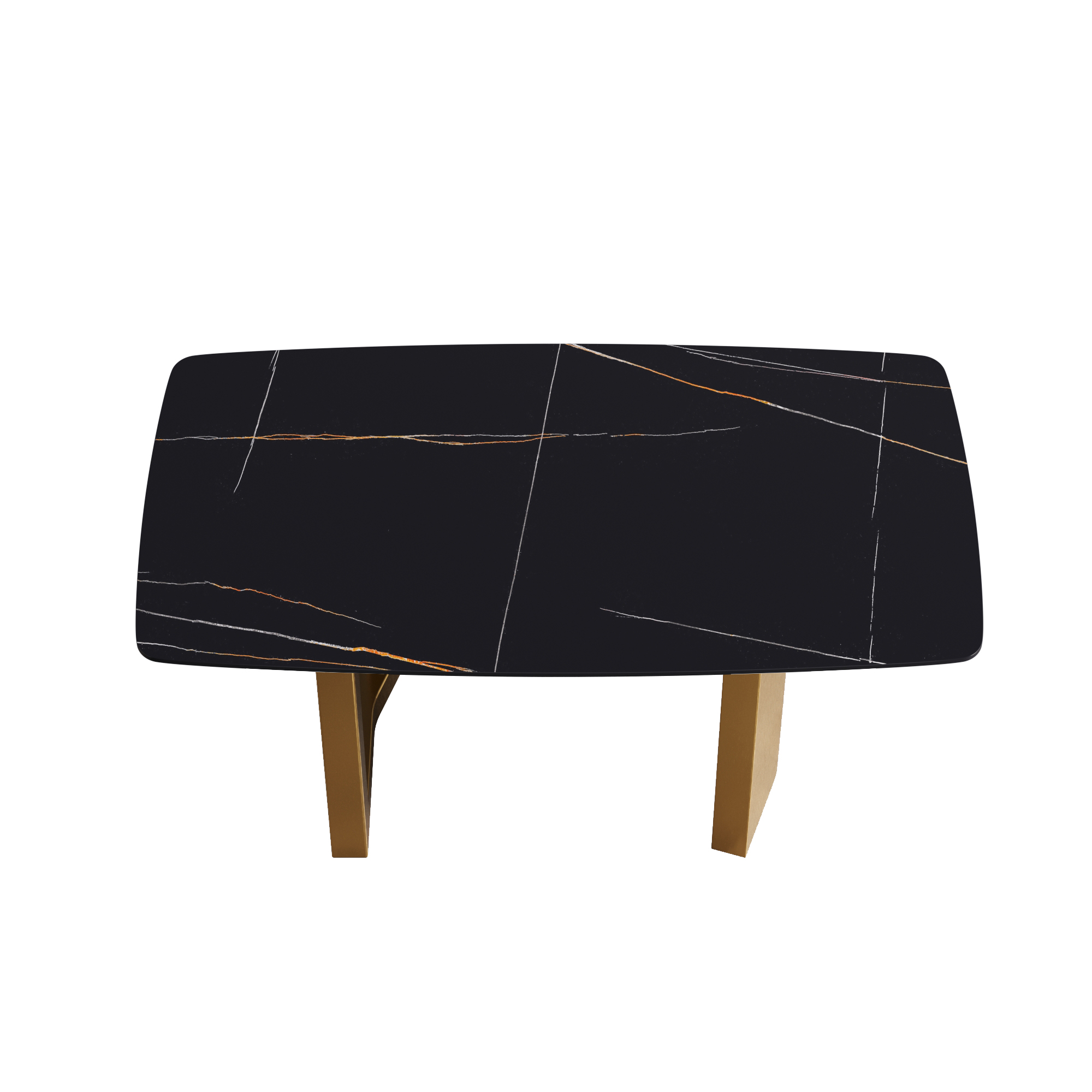 63"Modern artificial stone black curved golden metal leg dining table -6 people