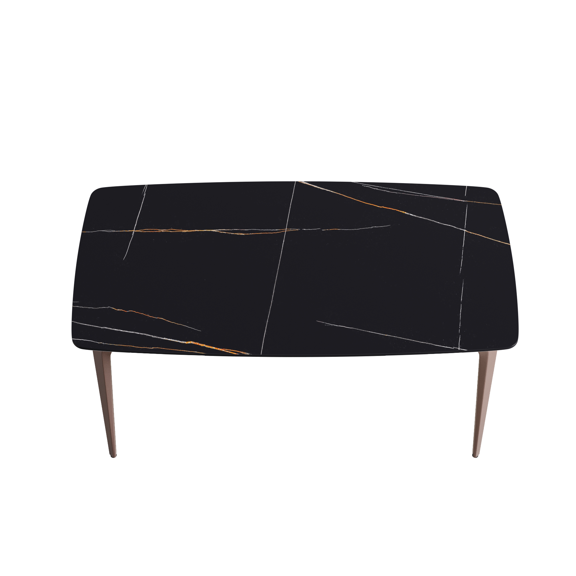 63"Modern artificial stone black curved metal leg dining table -6 people