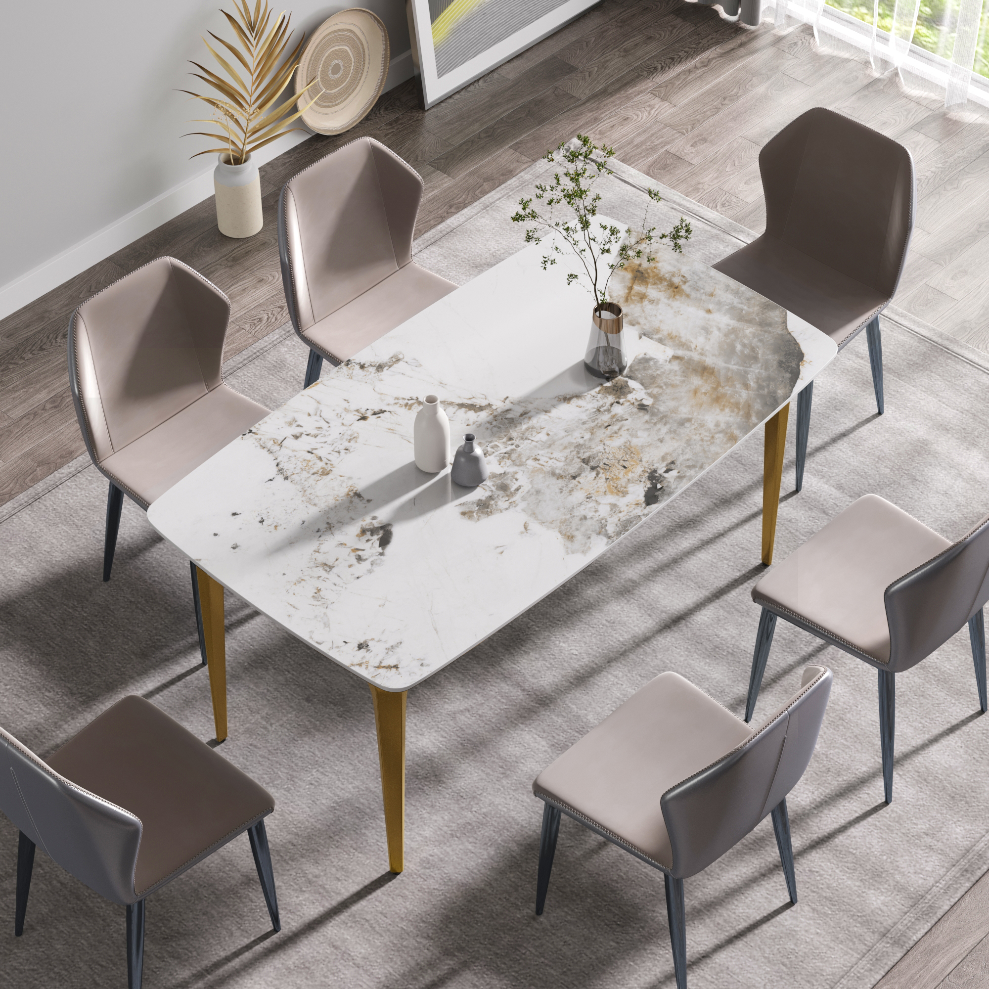 This modern and simple dining table will become the core of your dining, because it is not only the place where you hold dinner and family dinner, but also adds beauty to your space. Undoubtedly, the most striking thing about this dining table is the contrast between the snow-white panel and the aesthetic texture on the table top. Candlesticks can be placed on the dining table in a large space to create a romantic atmosphere for loved ones and a beautiful environment for family dinners and food ~Product description:[White simple appearance] This rectangular dining table is made of artificial stone, which is made into a perfect dining table with exquisite craftsmanship and can accommodate 6 people.[Strong dining table panel & easy to clean] The table top is one of the strongest surfaces. The 12mm thick desktop is made of sintered stone, which is heated and pressed into a blade shape, providing you with a desktop that can be used for many years. This material can prevent burns, stains and scratches, and has the characteristics of heat resistance, fire resistance and antifouling.[Stable base] This dining table is designed with four legs, and each leg has a contact surface, which has high stability.[Pandora panel color] The color of this panel is Pandora white design, and the panel exudes unparalleled beauty. The dining table in the dining room has a noble feeling in the middle ages.Product advantages:[Anti-fouling & easy cleaning] Extremely low water permeability can make oil or liquid impermeable, and the desktop can be kept clean only by wiping.[Fire resistance and high temperature resistance] When in direct contact with high-temperature objects or flames, it will not deform, crack or emit gas or odor.[Using natural materials] Natural materials do not release harmful substances, and are 100% recyclable. No radiation, direct contact with food.[High hardness] The 12mm thick panel has high hardness, leaving no trace whether it is knocked or cut with a knife.Warm tip:During the processing of natural materials, there will be subtle changes in color tone, surface texture and texture, and there will be subtle differences with pictures, which is a normal phenomenon. Natural changes are not regarded as product defects.