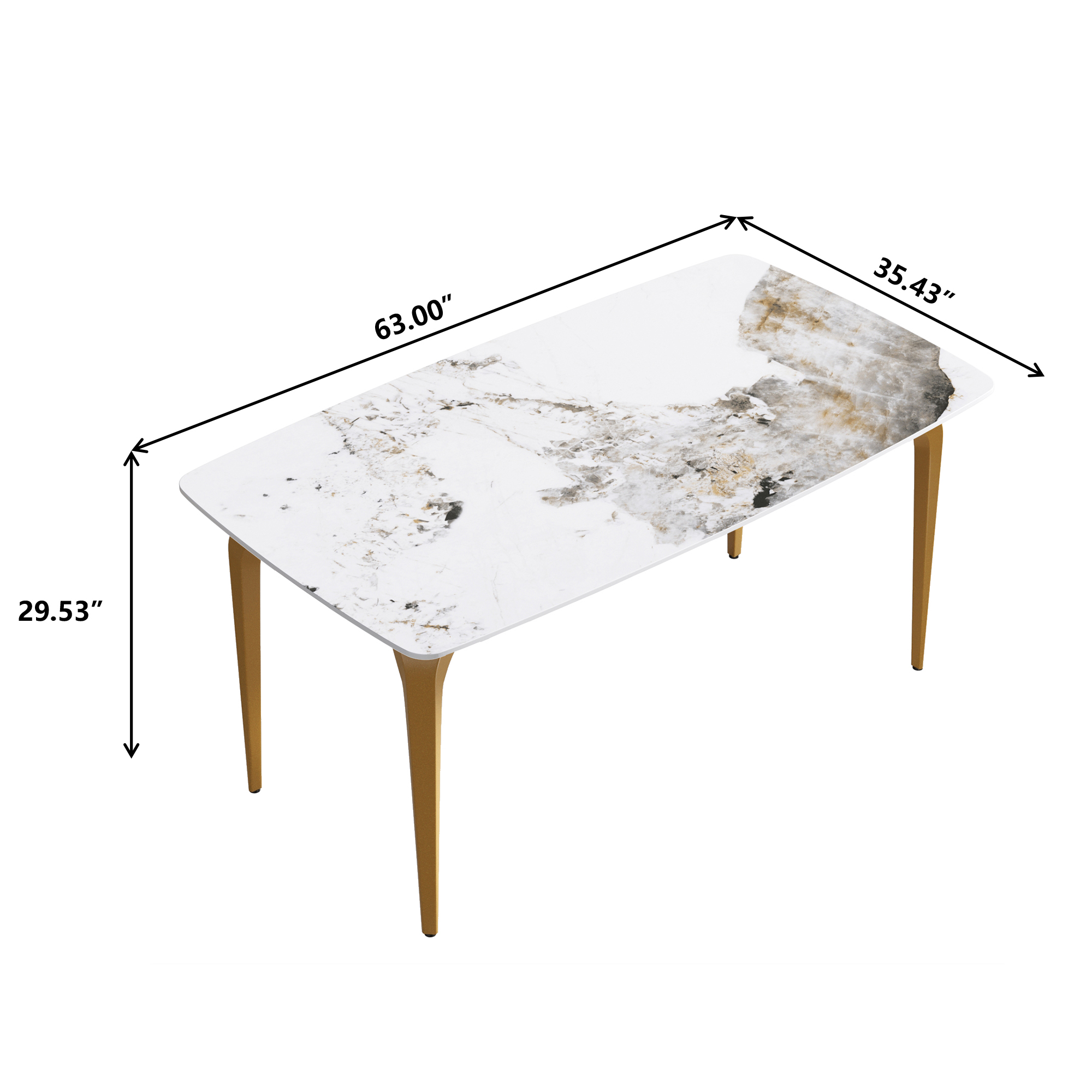 63"Modern artificial stone Pandora white curved golden metal leg dining table -6 people