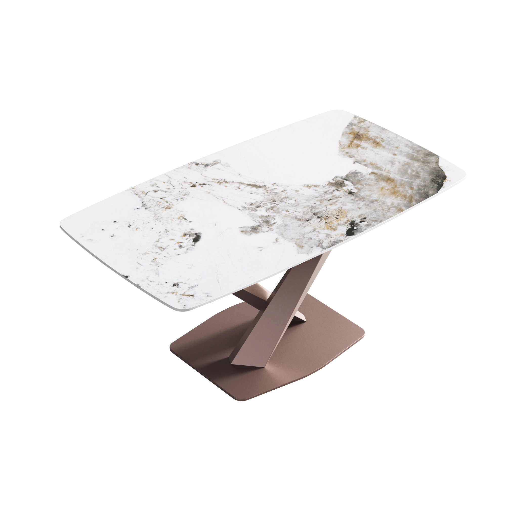 63"Modern artificial stone pandora white curved metal leg dining table -6 people