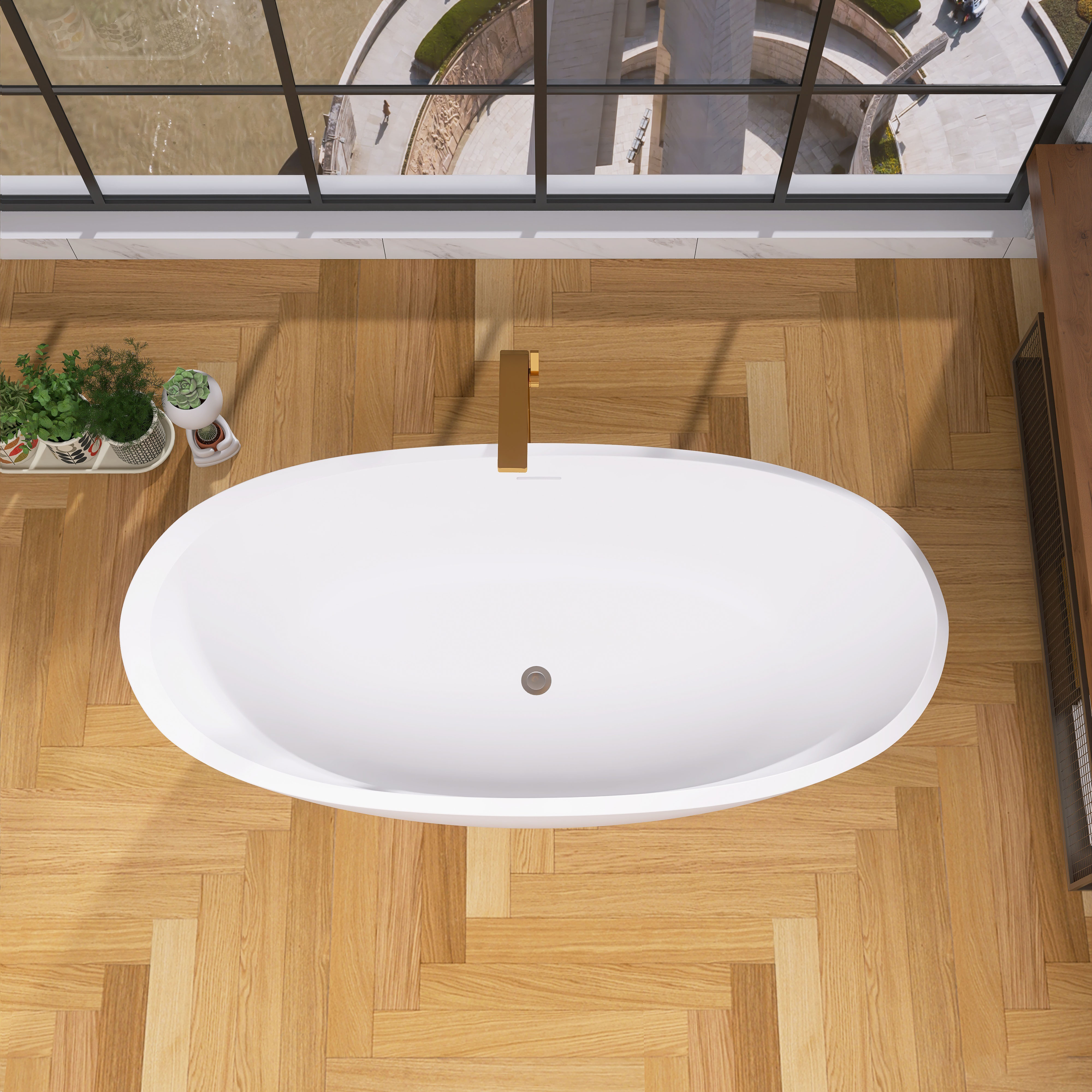 The modern design of oval shape white free-standing tub, combines luxury, elegance, and fashion, creating a unique bathing space for you. With excellent heat retention as well as a high gloss white finish, this alone soaking tub is easy to keep bright and clean as new and never outdated after long-time usage.